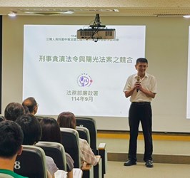這次說明會的課程內容相當豐富,由法務部廉政署林副署長炤宏精彩開場,以「刑事貪瀆法令與陽光法案之競合」為題進行深入講解,為所有與會者提供寶貴的知識與經驗。