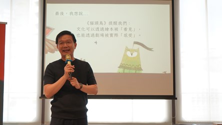 座談邀請四位劇場與創意領域的講者,包括「真的有劇團」團長呂宛臻、「新生一號劇團」團長張世暘、「青楓舞劇團」總監何玥霞以及「黎歐創意」總監王志中。每位講者皆分享自己在閱讀《貓頭鳥》繪本過程中的感動與啟發,互相探討如何透過戲劇、舞蹈、設計等形式延伸語言的創意表達,展現客語在不同藝術形式中的生命力。