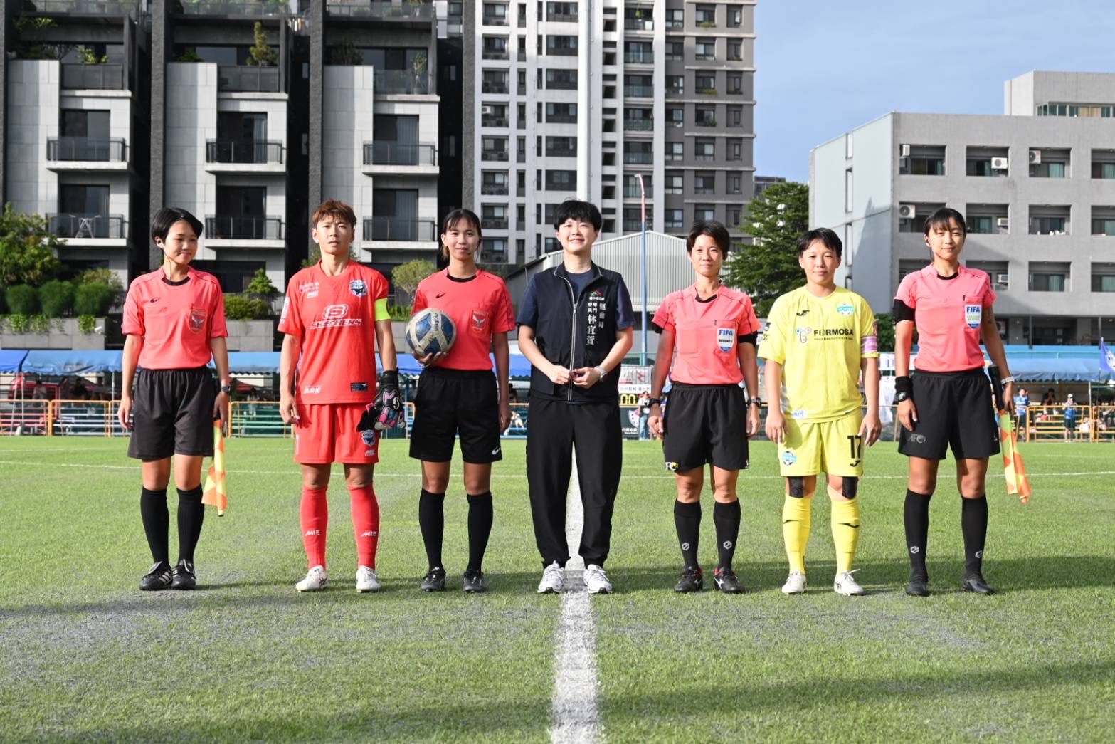 由中華民國足球協會主辦的「2025-26台灣木蘭足球聯賽」自8月中旬熱血開踢,今(20)日在太原足球場迎來首場賽事,由「木蘭聯賽常勝軍」台中藍鯨主場迎戰台北熊讚。現場吸引大批球迷到場加油吶喊,期盼藍鯨延續連勝氣勢,穩坐積分榜首位。台中市政府運動局林宜萱專門委員亦代表市長盧秀燕及局長游志祥出席賽前開球,為台中代表隊應援,並勉勵球員全力以赴,展現平日辛勤訓練成果。