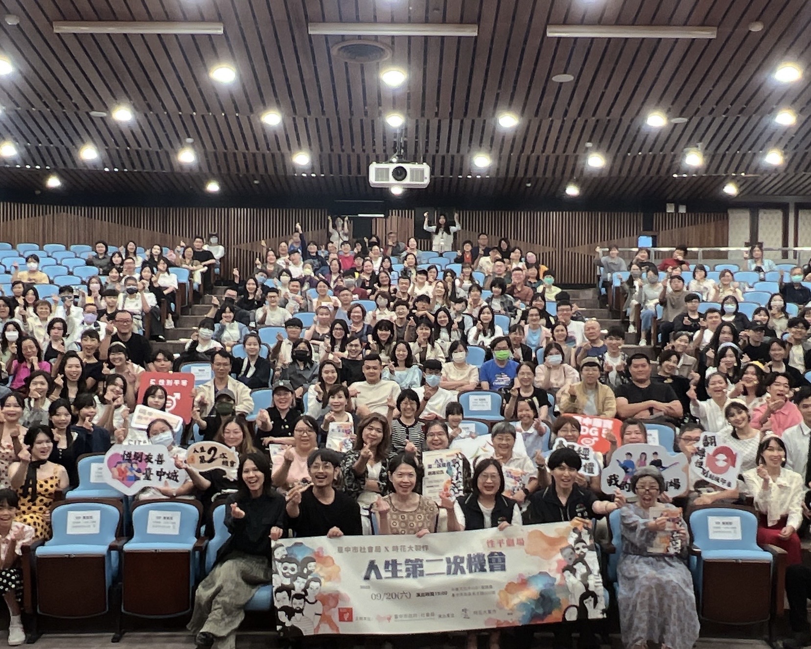 台中市政府社會局今(20)晚在大墩文化中心舉辦《我的性平劇場-人生第二次機會》公演,經過3個月密集訓練,29位素人演員登台演出校園青春、家庭衝突與親子對話等議題,勇敢說出生命故事,綻放性平光芒!帶領觀眾體驗一場真摯且深刻的性別平等劇場。