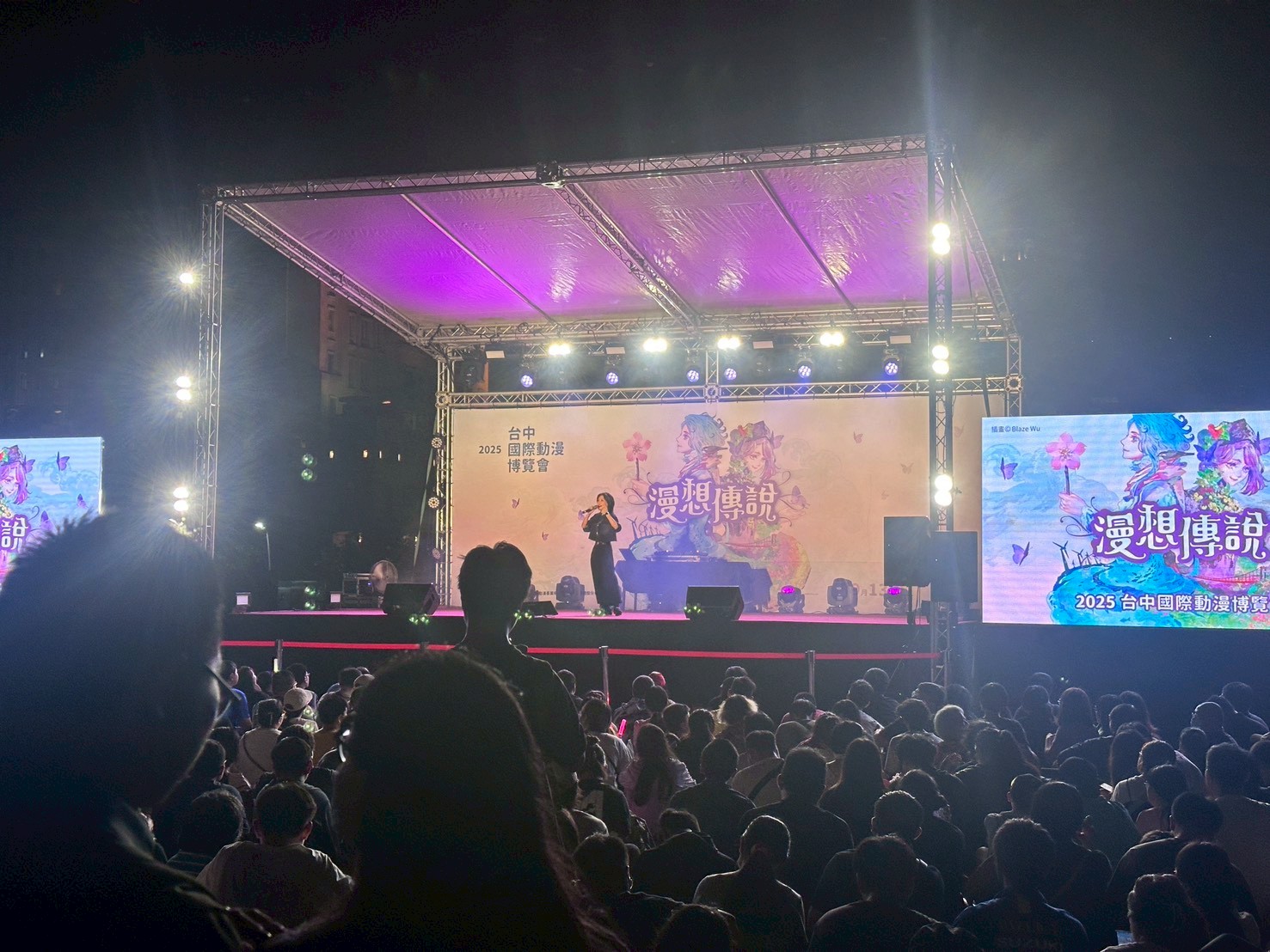 2025台中國際動漫博覽會於昨(20)日晚間在台灣大道市政大樓市府廣場迎來年度最高潮「夢想傳說 ‧ 動漫熱舞音樂會」,活動不僅有台灣人氣偶像與實力派歌手輪番開唱,還有「隨機熱舞派對」點燃現場所有動漫迷的熱情,最後由跨世代傳奇人物《寶可夢》小智聲優兼主題曲原唱松本梨香壓軸震撼演出,隨著音樂與燈光層層推進,現場氣氛不斷升溫,上千名動漫迷熱情參與,共同見證經典旋律在台中舞台重現。