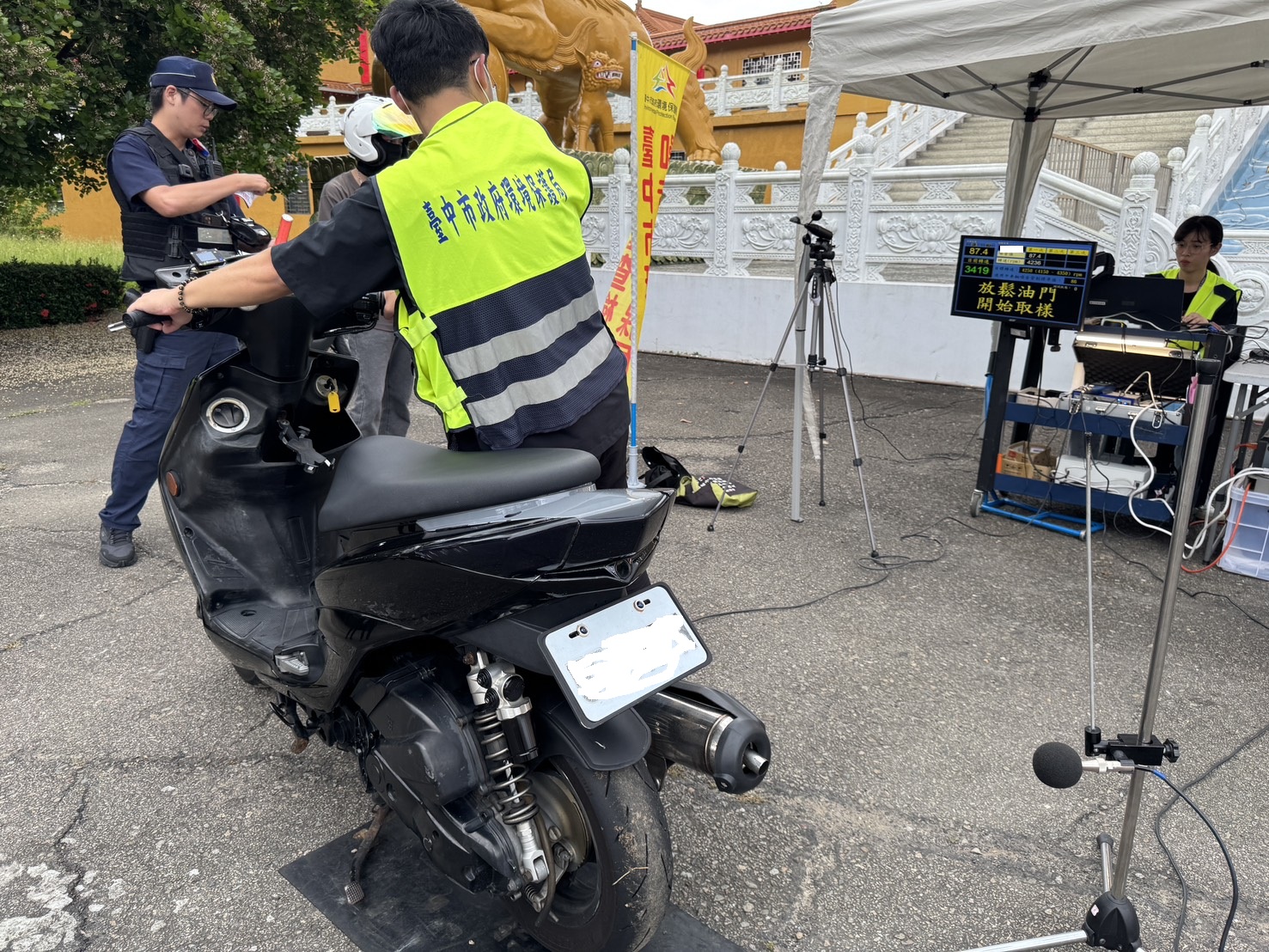 環保局日前於136縣道蓮華山護國清涼寺前設置檢測站,展開「環、警、監聯合稽查」,除配合環境部及交通部修法制定改裝排氣管認證制度重源頭管制,加嚴查緝使用非原廠及未完成認證登記的車輛,並針對噪音超跑、大型重機及違規改裝車輛加強查處,以維護居民安寧與行車秩序。今年1月起迄今因機動車輛噪音妨害環境安寧共計告發處分2,086輛、處新台幣536萬餘元罰鍰;排氣檢驗告發處分572輛、處新台幣100萬餘元罰鍰。