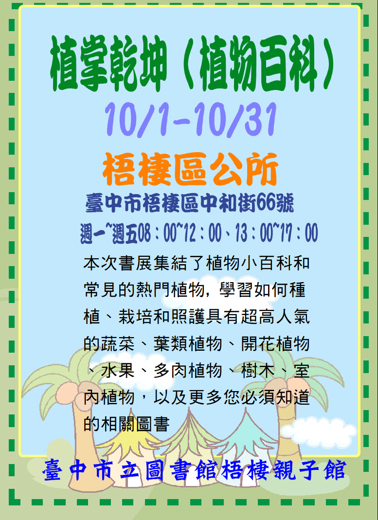 【梧棲親子館】10/01-10/31 植掌乾坤_植物百科主題書展