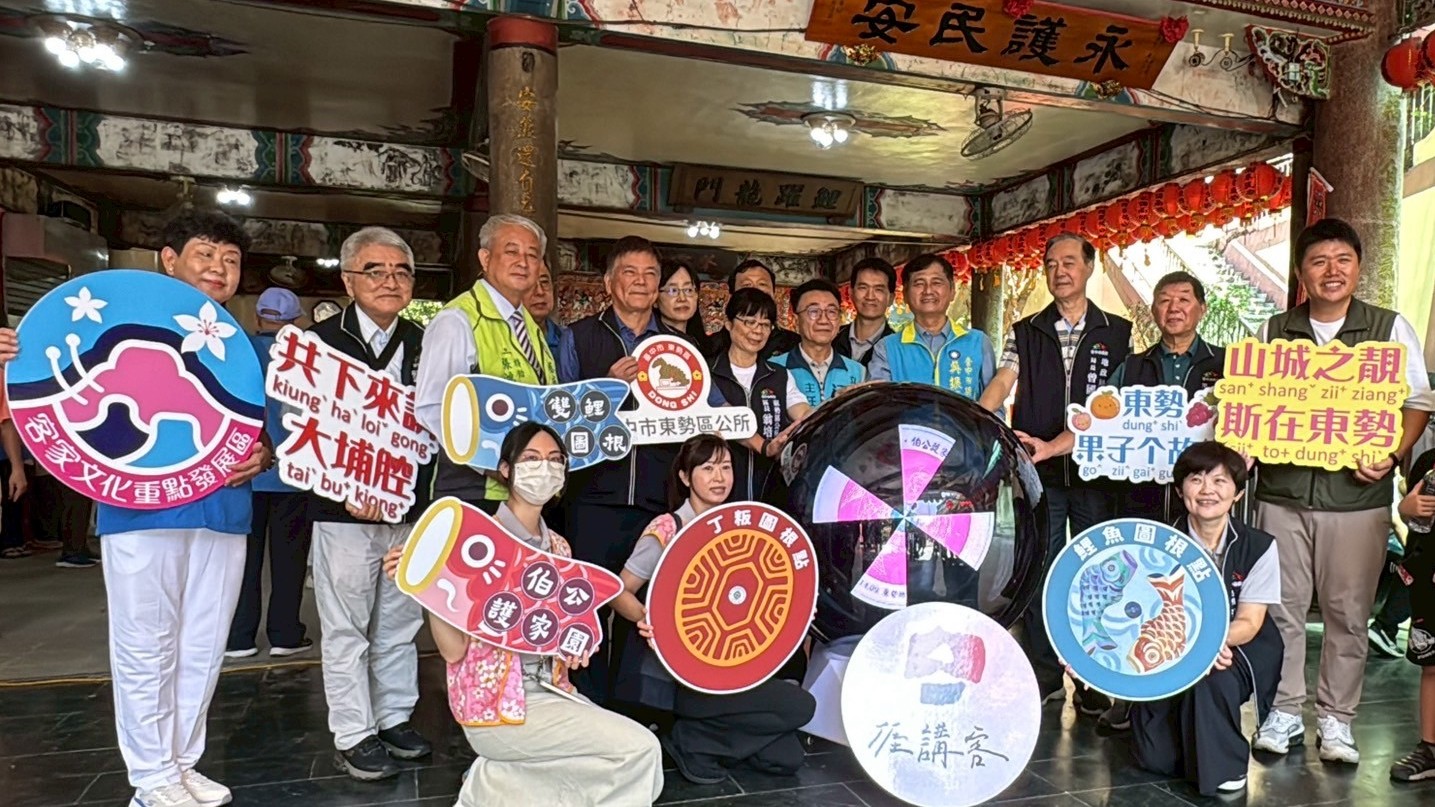 台中市東勢地政事務所結合地方特色建置的「鯉魚圖根點」,今(27)日於鯉魚伯公文化祭中正式啟用,成為廟前一大亮點。獨一無二的雙鯉圍繞設計,吸引參拜信徒與遊客駐足拍照,儼然成為東勢老街最新的打卡景點,也兼具土地測量與文化觀光雙重意義。