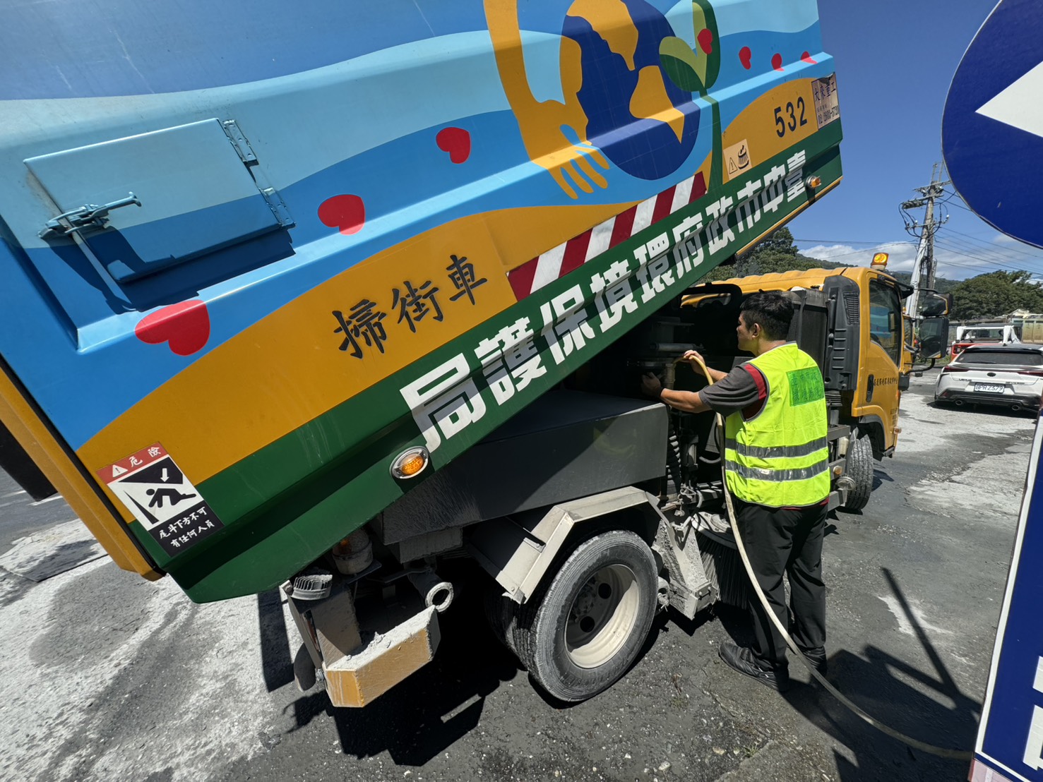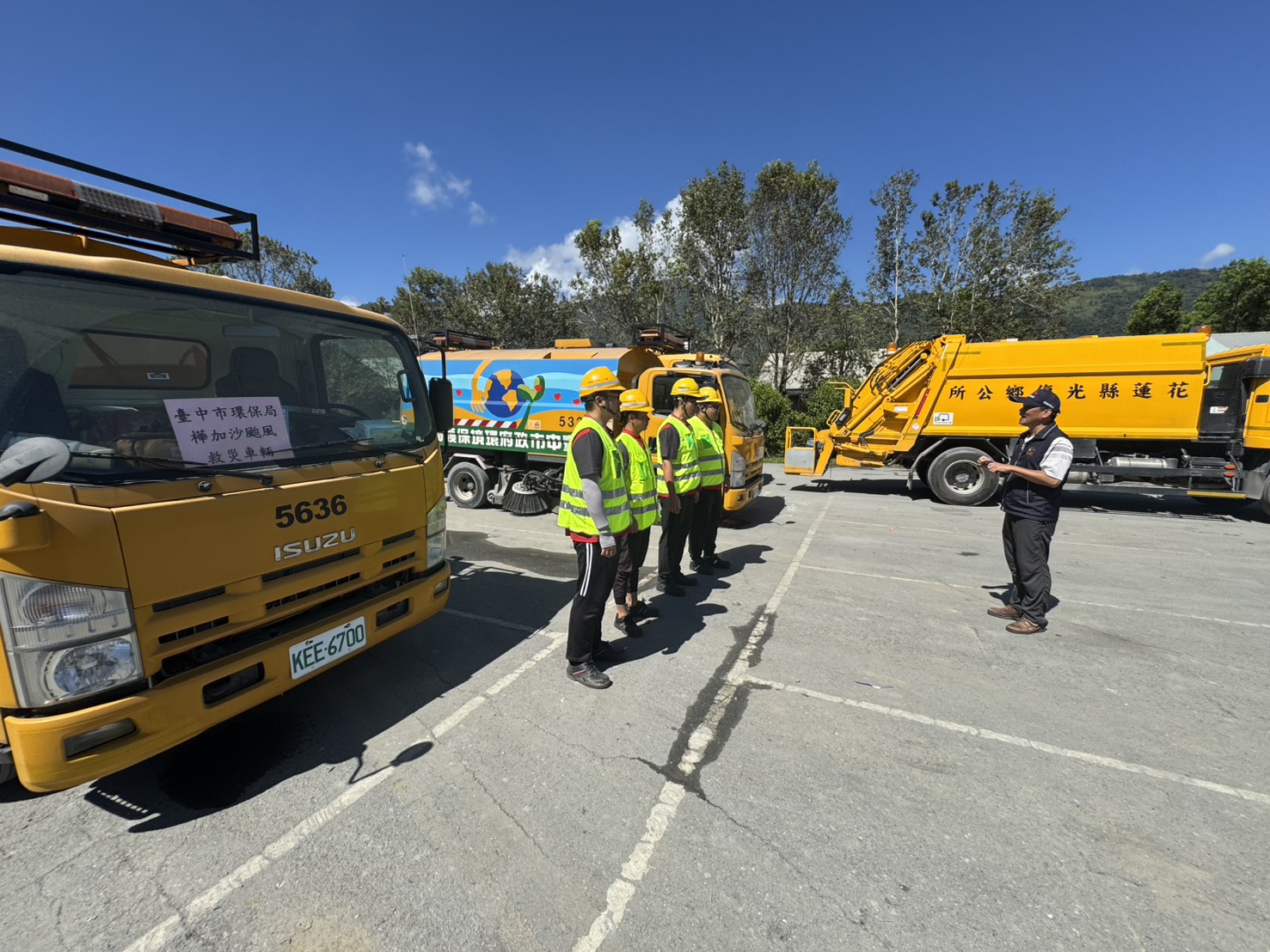 環保局長陳宏益表示,災區在大型淤泥清除完成後,仍急需專業掃街與洗街車協助,才能讓環境快速恢復。市府於25日接獲環管署請求支援,立即整備2輛大型掃街車及6名資深清潔隊員,由大肚區清潔隊大隊長何國仲擔任指揮官,並於昨日抵達花蓮救災前進指揮所光復糖廠,今(27)日上午便投入清理行動。