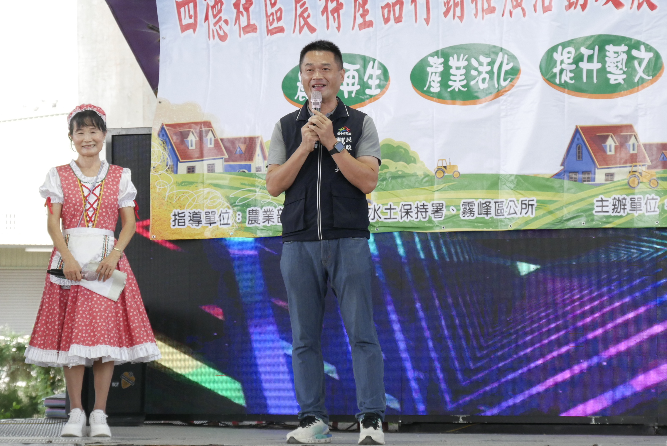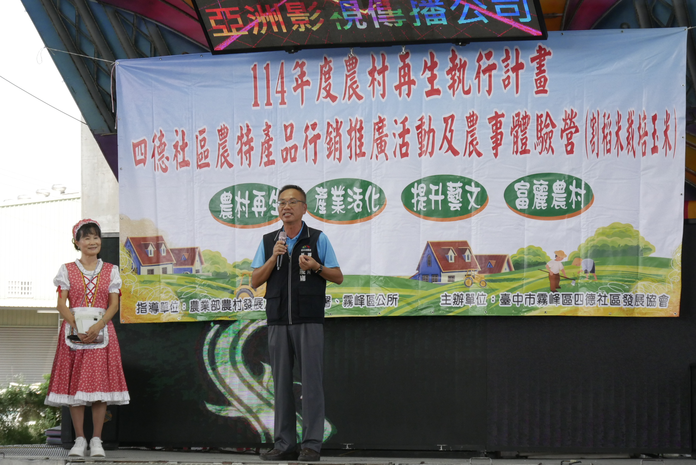 今日開幕式包含農業局科長黃育珍、民政局專員鄭伯其、霧峰區長張慶庸、四德派出所所長張建凱、四德社區發展協會總幹事顧東宇、北柳社區發展協會總幹事林銘祿、本鄉社區發展協會張滿姬、五福社區發展協會理事長陳慶華、五福里里長陳岳彬、六股里里長王原祥、中國國民黨霧峰區黨部執行長洪麗香、新德宮主委魏文芳:另外,立法委員顏寬恒、市議員張芬郁、林碧秀、蘇柏興、江和樹服務處代表皆到場共襄盛舉。