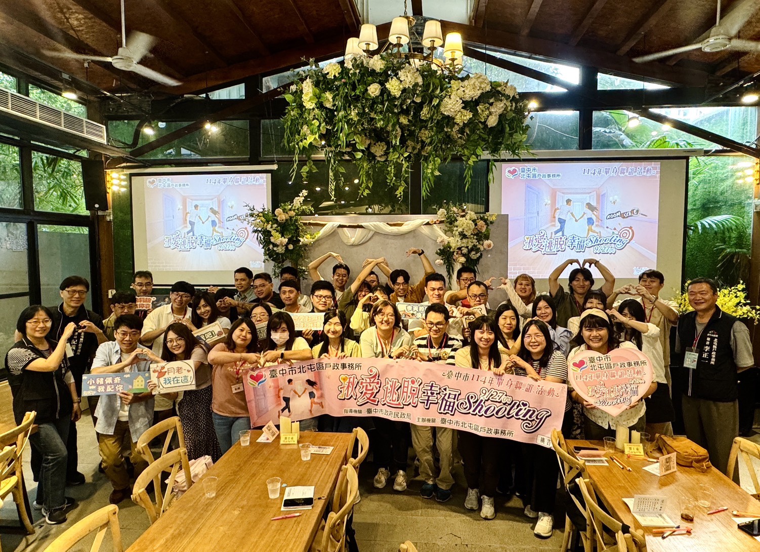 為協助單身民眾拓展交友圈,台中市政府民政局與北屯區戶政事務所昨(27)日攜手舉辦「揪愛逃脫、幸福Shooting!」單身聯誼活動,邀集39位單身男女齊聚一堂,體驗浪漫午宴、趣味飛鏢遊戲及刺激的真人密室逃脫,在笑聲與心動中共度美好週末。民政局長吳世瑋表示,此次活動成功促成17對有緣人互表心意,配對率高達八成九,市府「愛的助攻」持續發威,為單身男女牽起通往幸福的紅線。