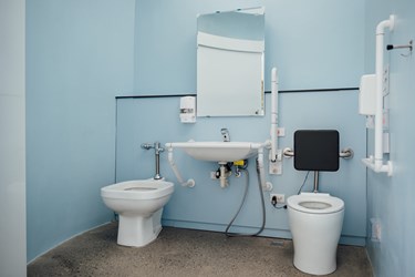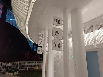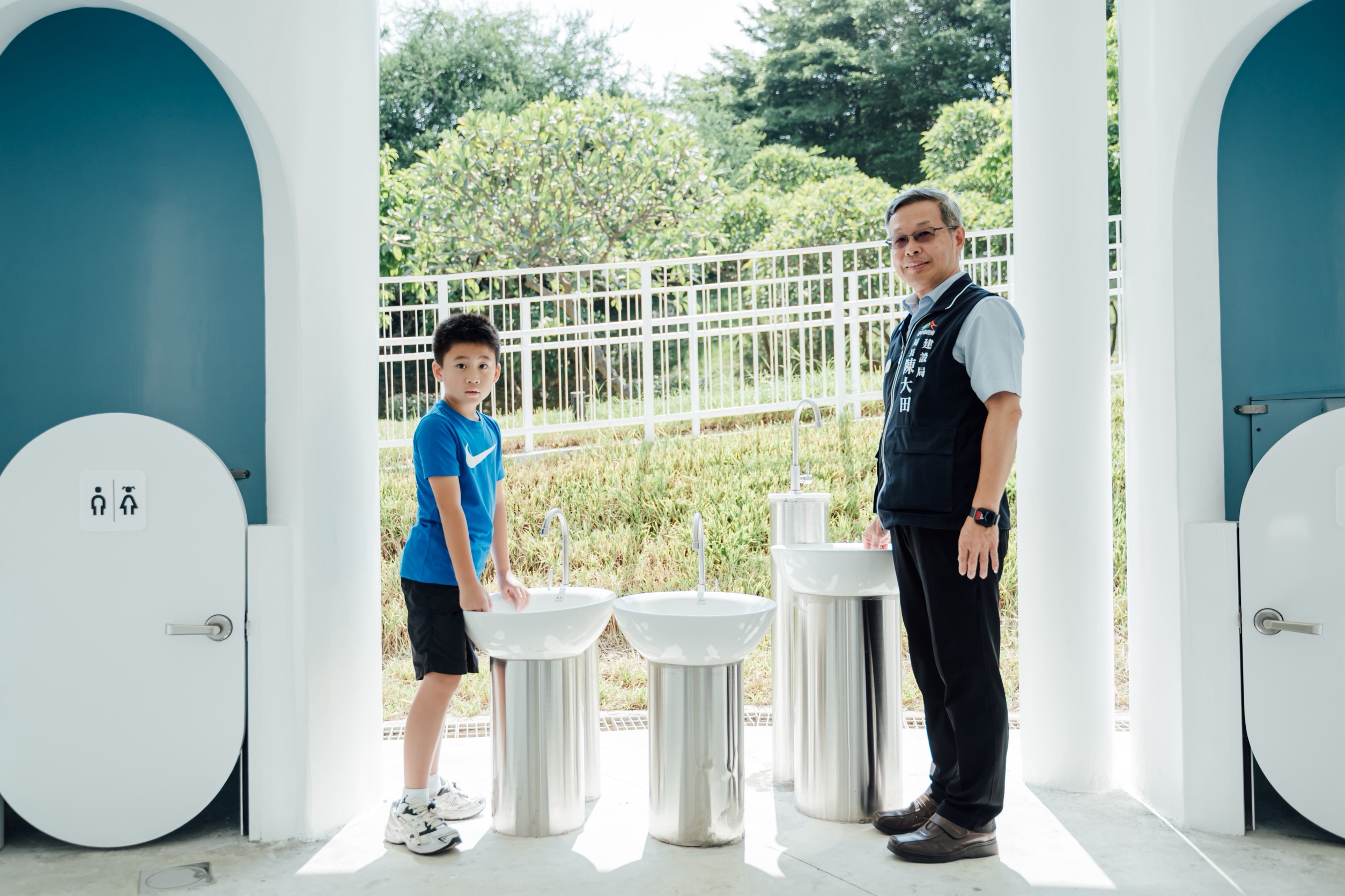 建設局表示,「親子小白宮」兼具美感與實用。內部規劃親子廁所、哺乳室及性別友善廁所,並設有兒童專用馬桶與洗手台,滿足不同族群需求。男女廁比例達1比6、坐蹲間比例13比8,優於一般公廁標準,有效紓解公園人潮高峰的等候問題。另結合智慧管理系統,提供 QR Code 即時通報、耗材監控與久待示警功能,讓民眾使用更舒適,也大幅提升維護效率。