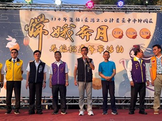 運動局表示,「嫦娥奔月馬拉松」自2019年舉辦至今已邁入第七屆,特別選在傍晚起跑,讓跑者伴隨浪漫月光暢快奔馳。局長游志祥代表市長盧秀燕出席致意,他表示,感謝主辦單位於佳節前夕辦理適合闔家同樂的路跑活動,不僅推廣全民運動風氣,也鼓勵市民甩脂健身、養成規律運動習慣。