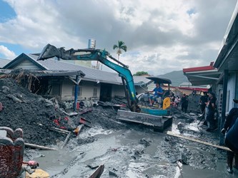 市府表示,建設局第一時間出動20名專業人員,並調派挖土機6台、山貓5台、卡車6台、水車1台,全力搶修中山路二段、武昌街與成功路等重災路段。建設局長陳大田提到,隊員們冒著滿地爛泥與倒塌雜物奮戰,甚至一度因洪水溢流緊急撤離,確認安全後立即重返現場,展現堅毅鬥志。過程中還協助救護車搶通受阻路段,爭取最寶貴的救援時機。