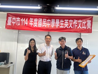 蔣局長指出,雙語教育是國家重要政策之一,也是台中市躍升國際城市的關鍵基石,113至114學年度,台中市已有231所國中小推動雙語教學,比例超過七成,顯示雙語教育已在穩健扎根;透過英文作文比賽,學生得以鍛鍊語言力與寫作力,同時激發思辨與創意,讓英語成為生活的工具,成為連結世界的橋梁。