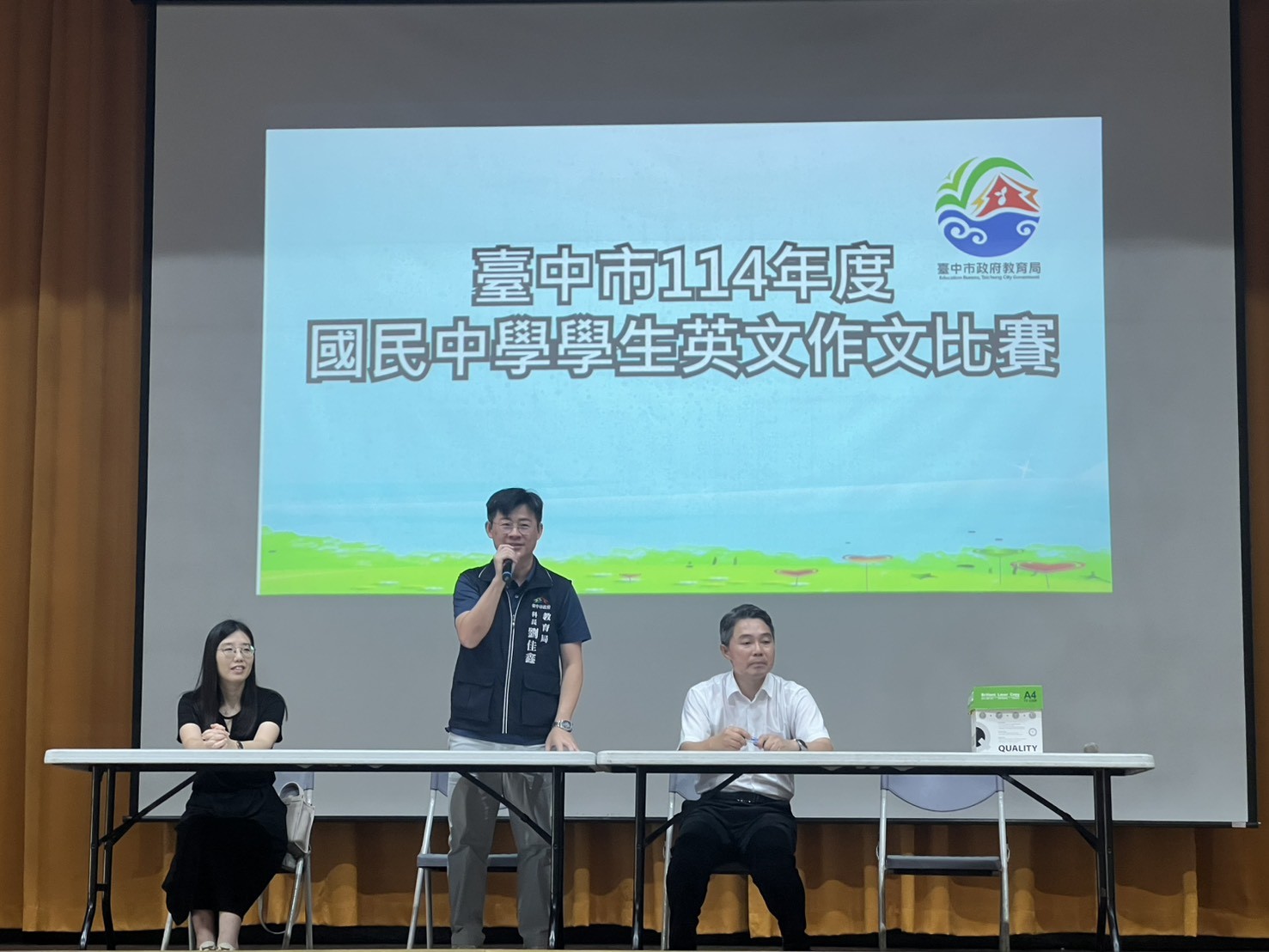 台中市政府教育局積極推動雙語教育,持續拓展學生的英語力與國際力,「114年度國中學生英文作文比賽」今(30)日於梧棲國中舉行,共有90所公私立國中參與,學生們在比賽中全力以赴,以筆尖書寫世界,展現平日努力學習的成果。教育局長蔣偉民表示,英文作文比賽是「以賽促學」的最佳體現,讓學生養成自信表達與獨立思考的能力,更引領學生打開國際視野,勇於用英語與世界對話。