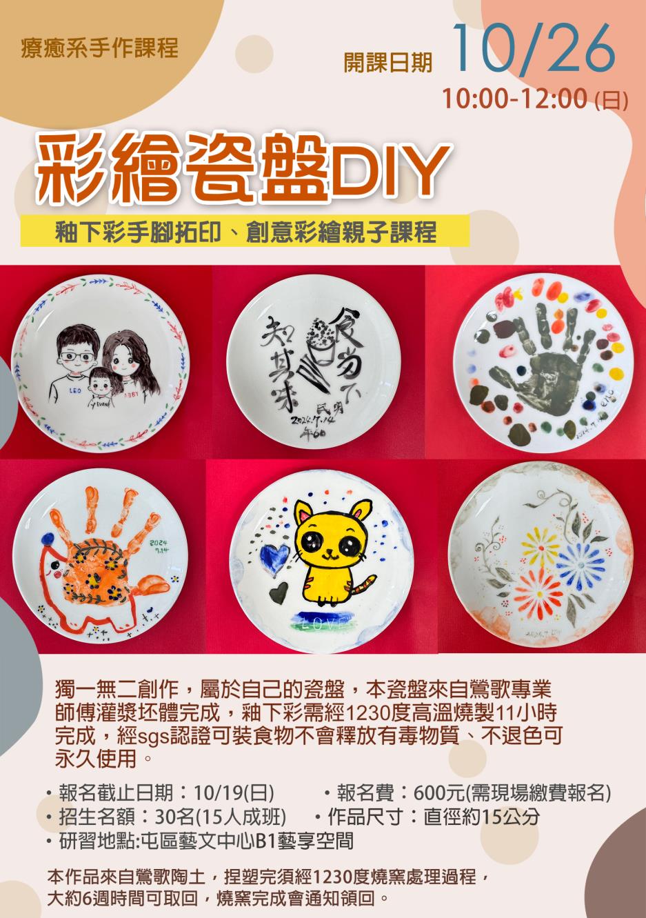 釉下彩手腳拓印、創意彩繪親子課程 尺寸:約直徑15cmX高2.5cm
