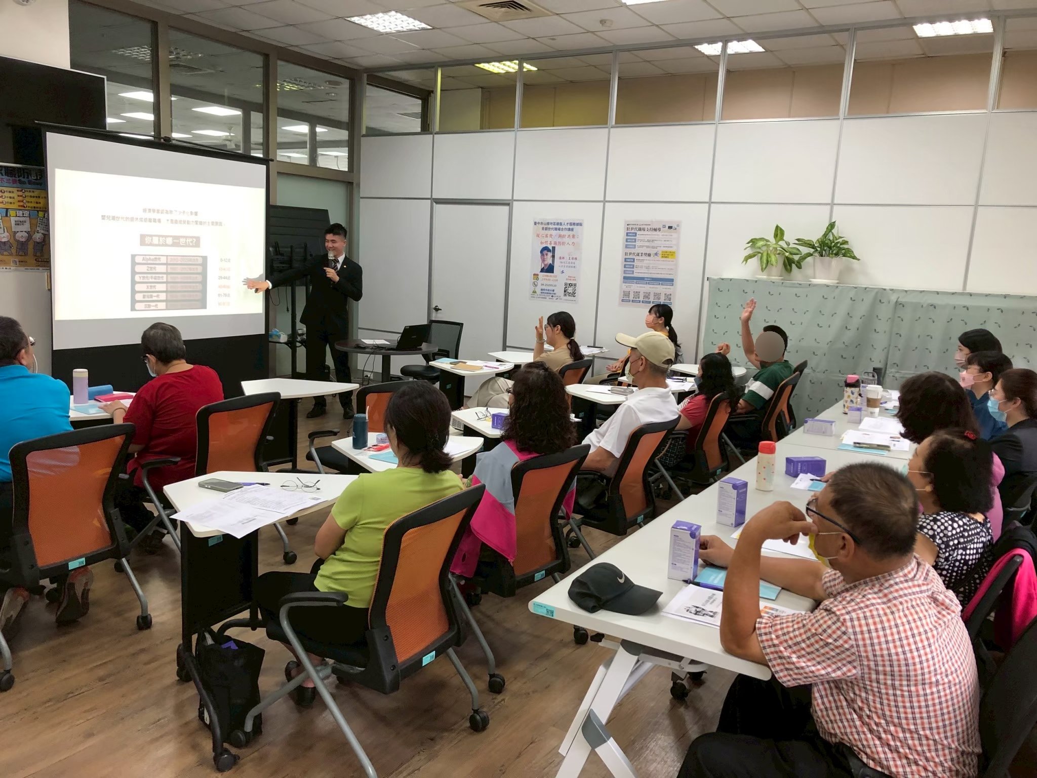 勞工局長林淑媛表示,市長盧秀燕積極推動高齡友善城市,鼓勵銀髮族持續參與社會,近日《天下雜誌》公布在今年首度舉辦「慢老城市調查」中,台中市更勇奪全國第一,展現高齡友善與世代共融的城市實力。銀髮據點為55歲以上或依法退休者提供專屬就業服務,除一般求職求才服務,還有徵才活動、職涯諮詢、就業促進及3C 科技應用課程等,更首創月月有徵才活動,透過每月定期定點方式,邀請至少2家以上的企業提供適合的工作職缺,用其尋找工作的步調與節奏,積極協助銀髮者再創職涯第二春。