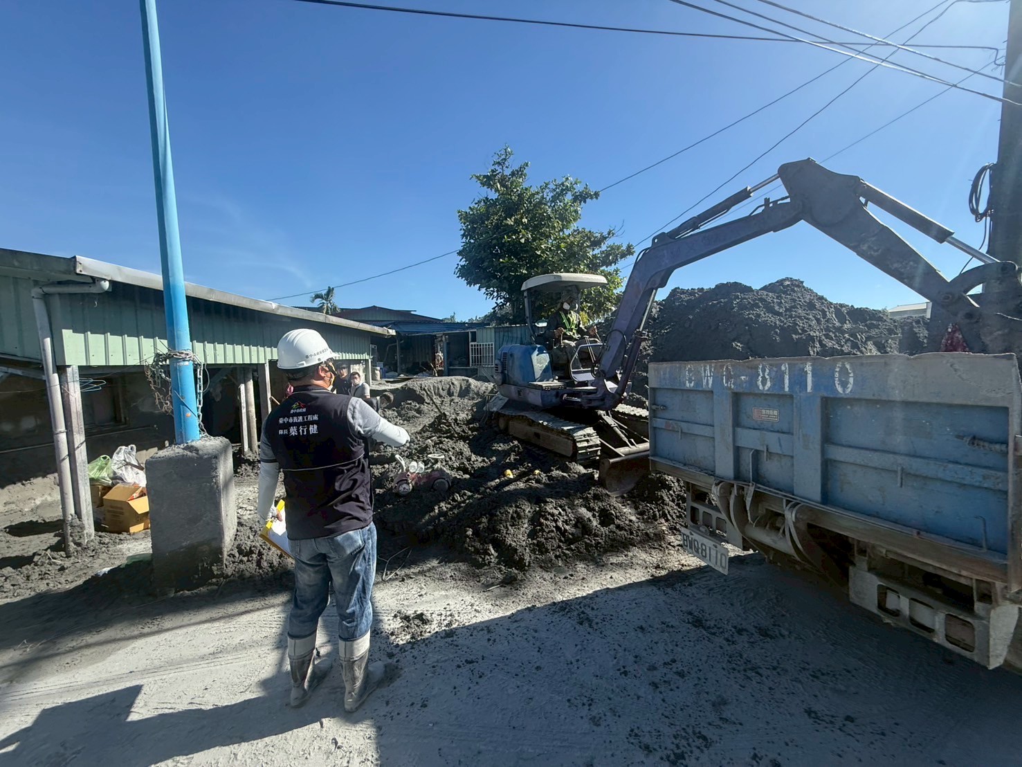 花蓮馬太鞍溪堰塞湖溢堤,導致道路中斷、住家與農地嚴重淤積。台中市政府建設局救災團隊持續支援,其中更有隊員家屬也參加「鏟子超人」志工行列,共同為花蓮災區努力。昨(30)日除道路復原外,更深入民宅勘查,了解居民受災情況,並立即調度人力與機具展開清理。厚重泥沙逐步被清除,受災鄉親激動表示「看見台中隊到來,心裡終於踏實」,更感謝重機具的加入大幅加快復原進度。