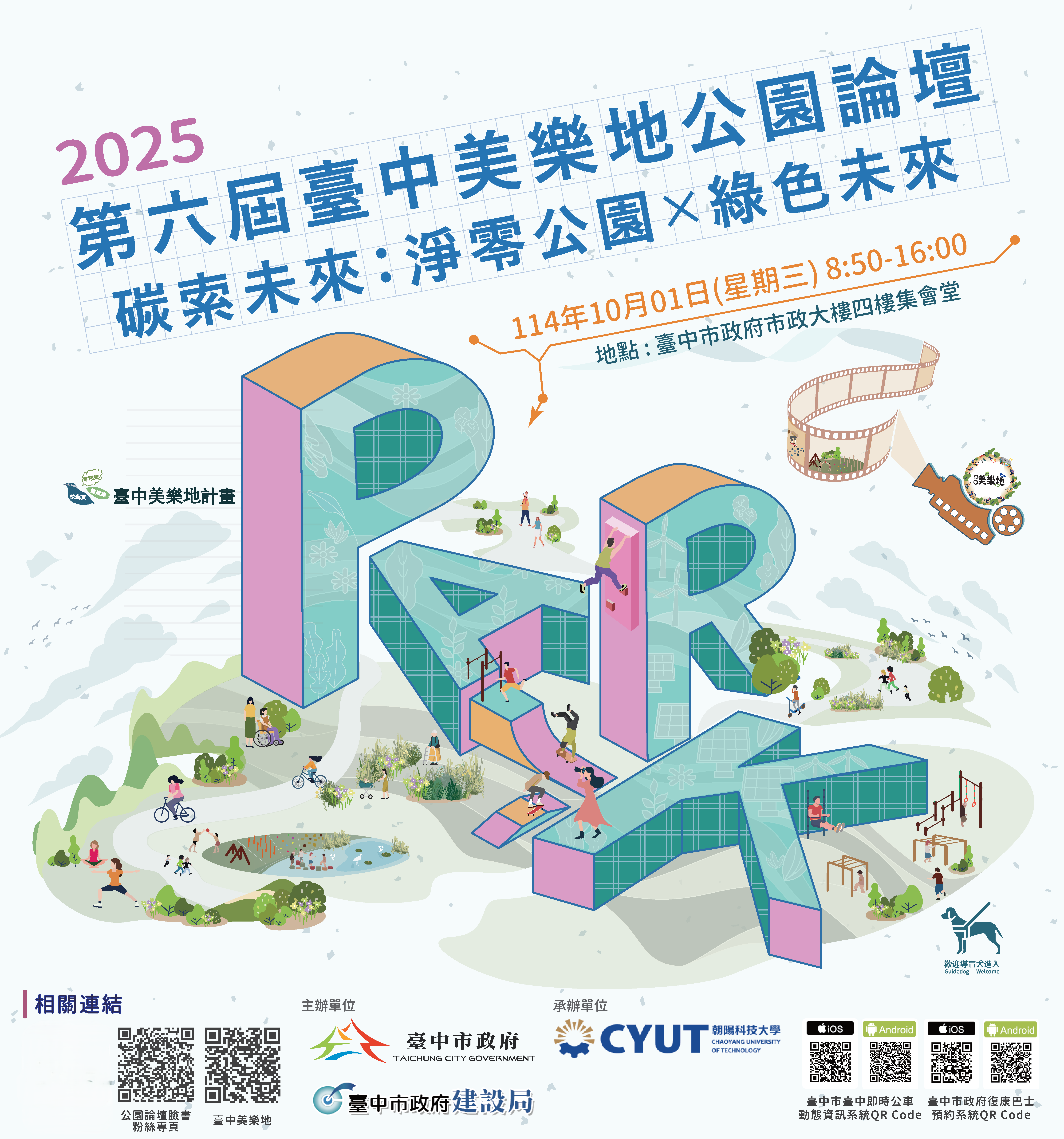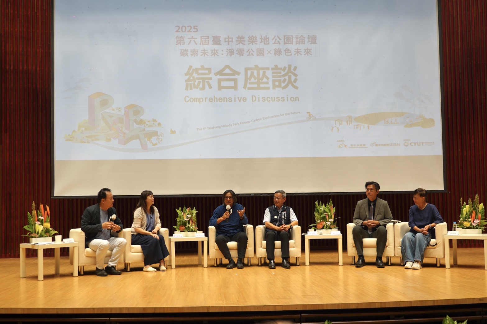 台中市政府今(1)日在市政大樓四樓集會堂舉辦「第六屆美樂地公園論壇」,由秘書長黃崇典代表市長盧秀燕主持,吸引超過633人到場參加,觀看線上直播更破1,000人次,盛況空前、再創論壇新高峰;今年論壇以「碳索未來:淨零公園Ⅹ綠色未來」為主題,聚焦碳中和與淨零碳排等永續議題,特別邀請國內專家及日本國際級重量級講者,帶來四場精彩的實務分享與交流。同時,現場也舉行學生競圖獲獎作品頒獎典禮,展現青年創意與永續設計能量。