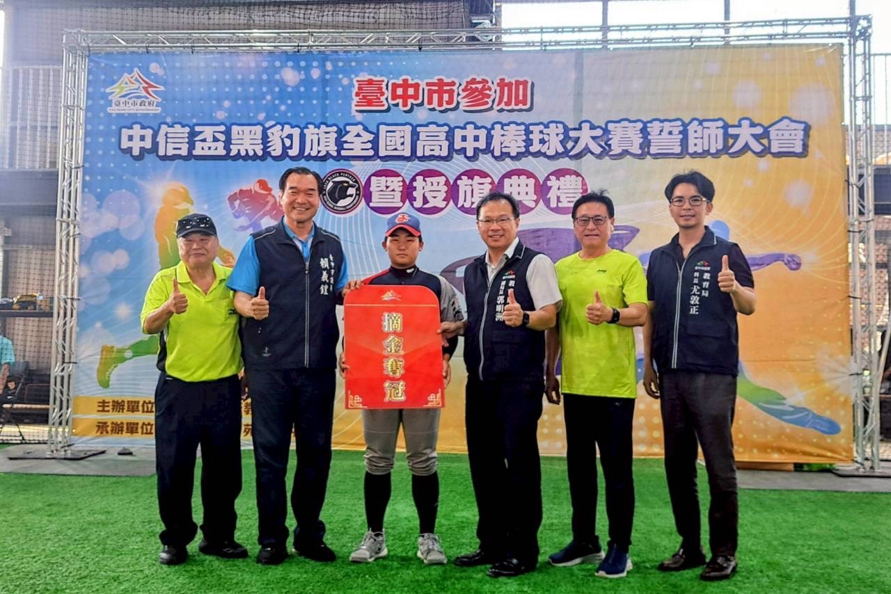 2025年第13屆中信盃黑豹旗全國高中棒球大賽將於10月26日起熱血登場。黑豹旗賽事為全國規模最大的高中棒球盛會,不僅讓科班球隊參與,也開放社團式棒球隊參賽,是檢視基層棒球訓練成果的重要指標。台中市政府教育局今(2)日於櫻花棒球場舉行誓師大會暨授旗典禮,由副局長郭明洲授旗並頒發每支隊伍4萬5,000元的參賽經費,為即將代表台中市參賽的高中棒球隊加油打氣,勉勵選手們發揮實力、旗開得勝。