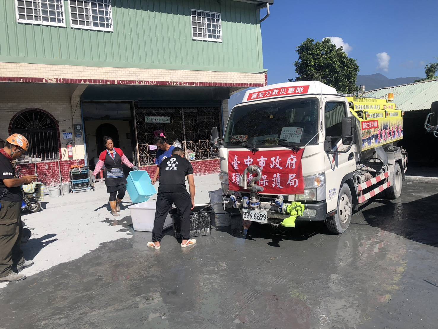 環保局說明,第一波救援工作由大肚區清潔隊大隊長何國仲率領,共6名同仁及2台大型掃街車,期間連續3天投入救災,完成中山路一段、中興路、糖廠街、光復糖廠及土方暫置區等重要區域,期間同仁揮汗清理滿布淤泥的道路,也主動協助居民清理環境,展現「台中隊」的專業與熱忱。