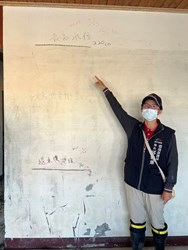 受災居民王先生回憶,家中淹水深達 2 公尺,退水後泥土仍厚近 1 公尺,一度陷入絕望;在環保局協助下,地板重現光亮,讓他重新燃起重建信心,感動地說:「雖然什麼都沒了,但人活著就有希望。」現場隊員聽後也都感同深受。
