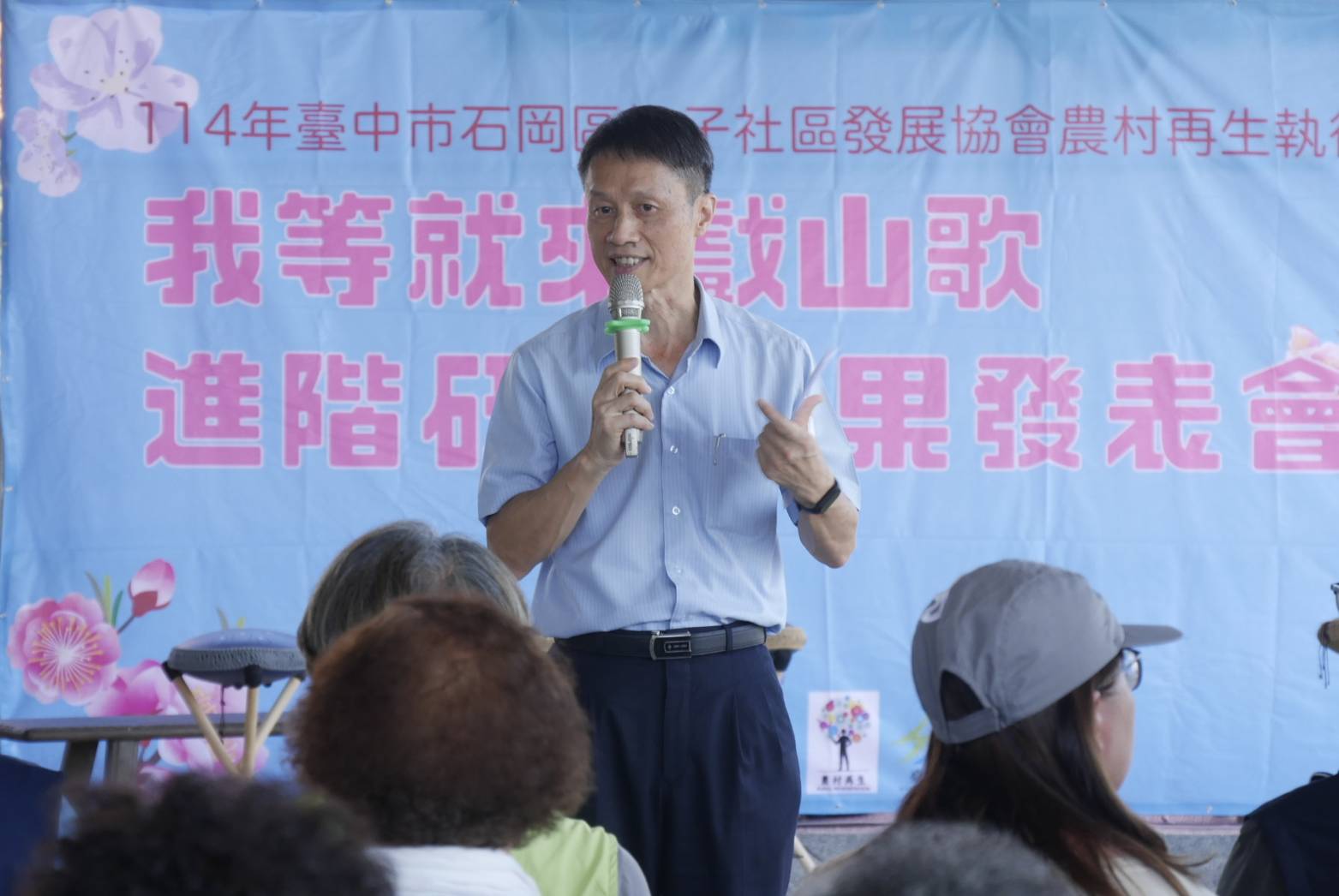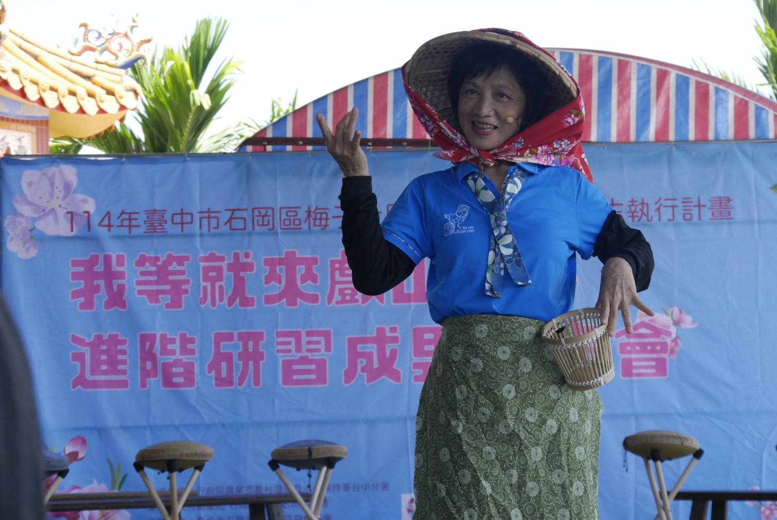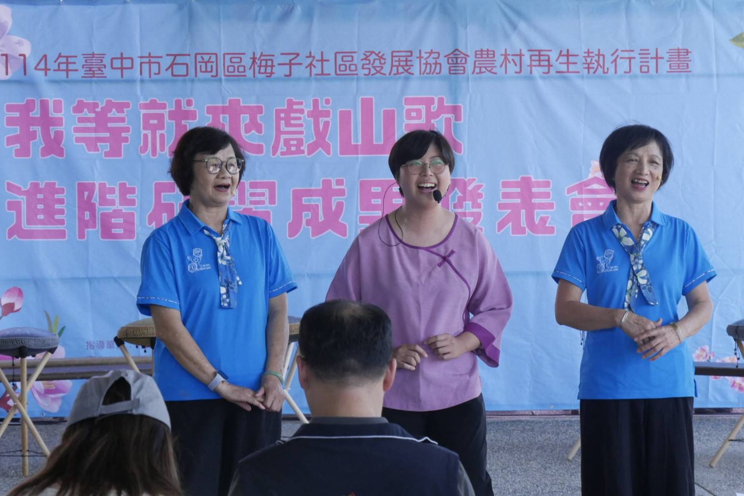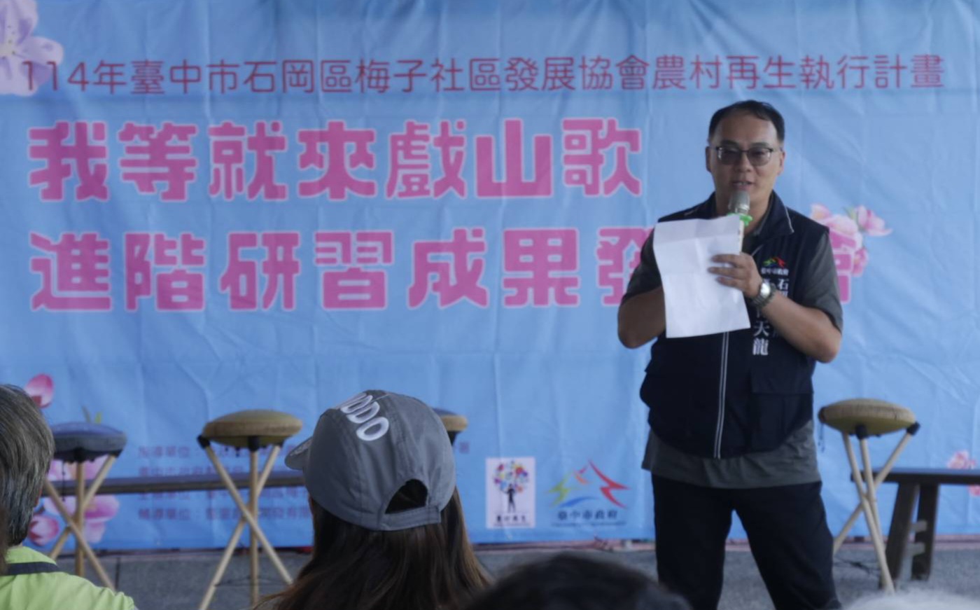 台中市政府農業局輔導台中市石岡區梅子社區發展協會,於(5)日在梅子社區承福祠百年芒果樹下廣場舉辦「我等就來戲山歌-進階客家歌謠與戲劇研習計畫成果發表會活動」。此次活動展現出社區居民歷時多月的學習成果,藉由歌謠、戲劇與在地文化的結合,讓參與者感受石岡社區濃厚的人情味與文化底蘊。