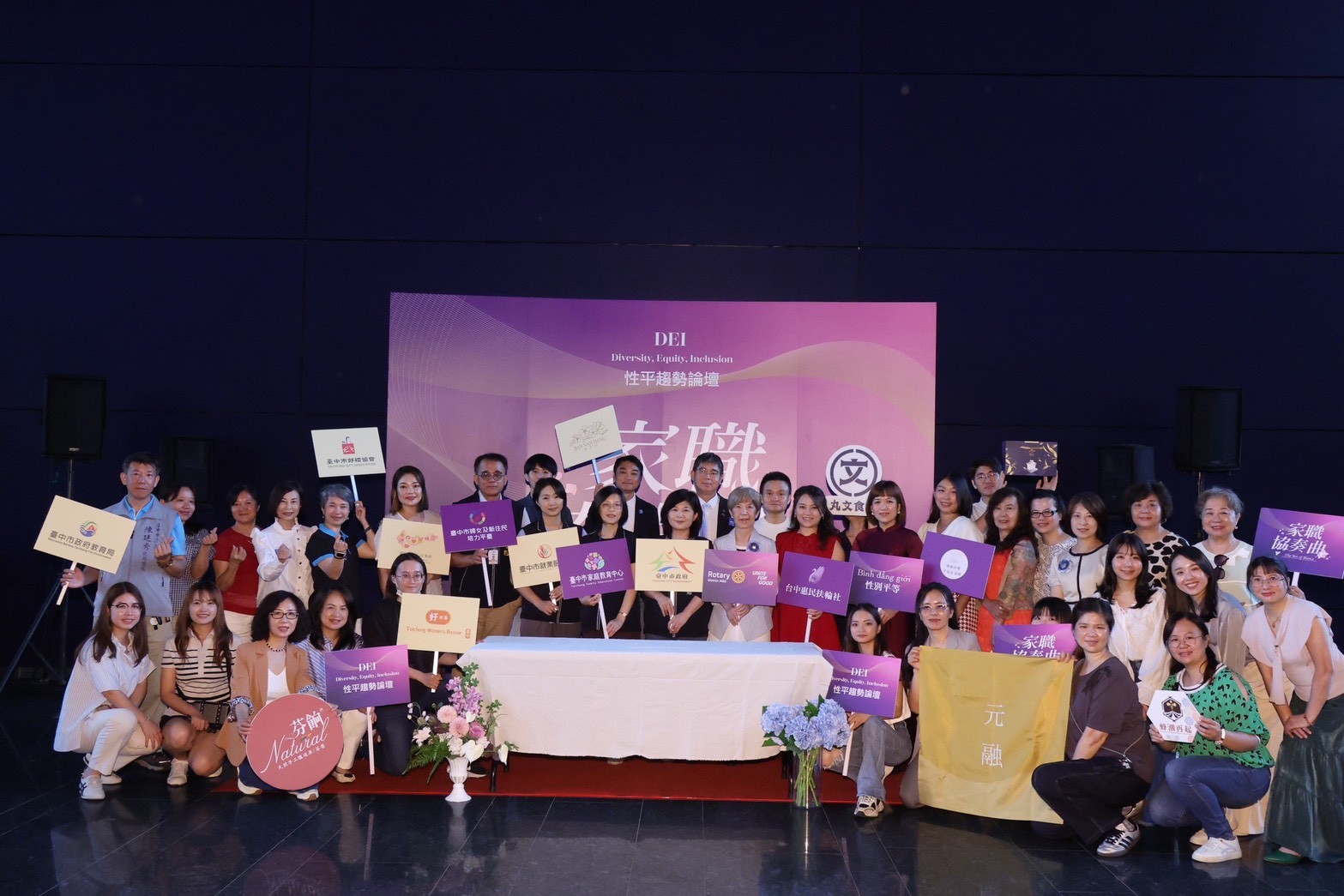 台中市家庭教育中心今(7)日上午於台中市政府市政大樓4樓集會堂舉辦「2025性平趨勢論壇–家職協奏曲」,特別與國際扶輪社3462地區攜手合作,邀請來自職場、社區與專業領域的女性代表,分享如何在家庭、生活與職場間追求平衡,論壇現場吸引近400位扶輪社員熱情參與,現場氣氛熱烈。