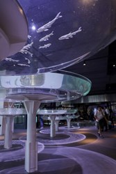 觀旅局表示,台中海洋館全國首創六大特色展區,包括以蓮花造型展示的「台中河川展區」;「室內濕地體驗潮汐區」;全台規模最大、物種最豐富的「水母主題展區」;「開放式企鵝展示空間」,可從下方仰望企鵝悠游姿態;360度全透明「鯊魚虛實展示缸」;以精品風格打造的「璀璨珊瑚展示區」,全面呈現海洋生態之美與教育價值。