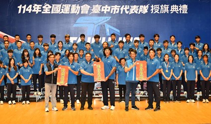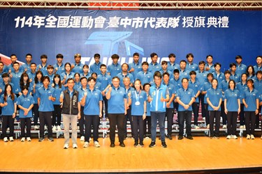 114年全國運動會將於10月18日至23日在雲林縣登場,台中市代表隊今(8)日舉行授旗典禮,由副市長鄭照新在運動局長游志祥陪同下親自授旗,為選手加油打氣。典禮中由2025萊茵魯爾世大運體操銅牌得主陳詠綺代表接旗,象徵榮耀傳承與奮戰決心。鄭副市長表示,全運會是國內亞奧運項目的最高殿堂,參賽者皆為全國頂尖選手,感謝台中市體育總會理事長暨市議會議長張清照及秘書長蘇柏興議員的全力支持。市府與體總攜手打造完善運動人才庫,提供最堅實的後盾,期勉代表隊勇奪佳績、再創台中榮光。