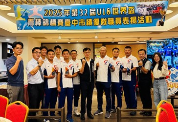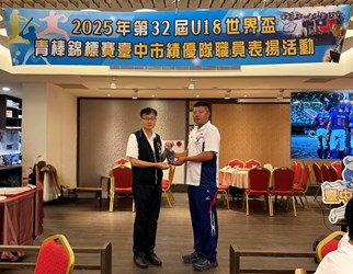 2025年第32屆U18世界盃青棒錦標賽圓滿落幕,台中市多名優秀選手與教練團代表中華隊出賽,表現亮眼,展現堅強實力與團隊精神,為國爭光。台中市政府教育局今(8)日舉行績優隊職員表揚慶功宴,由局長蔣偉民代表市長盧秀燕親自頒發紀念品,向辛勤付出的教練與選手致上最高敬意。