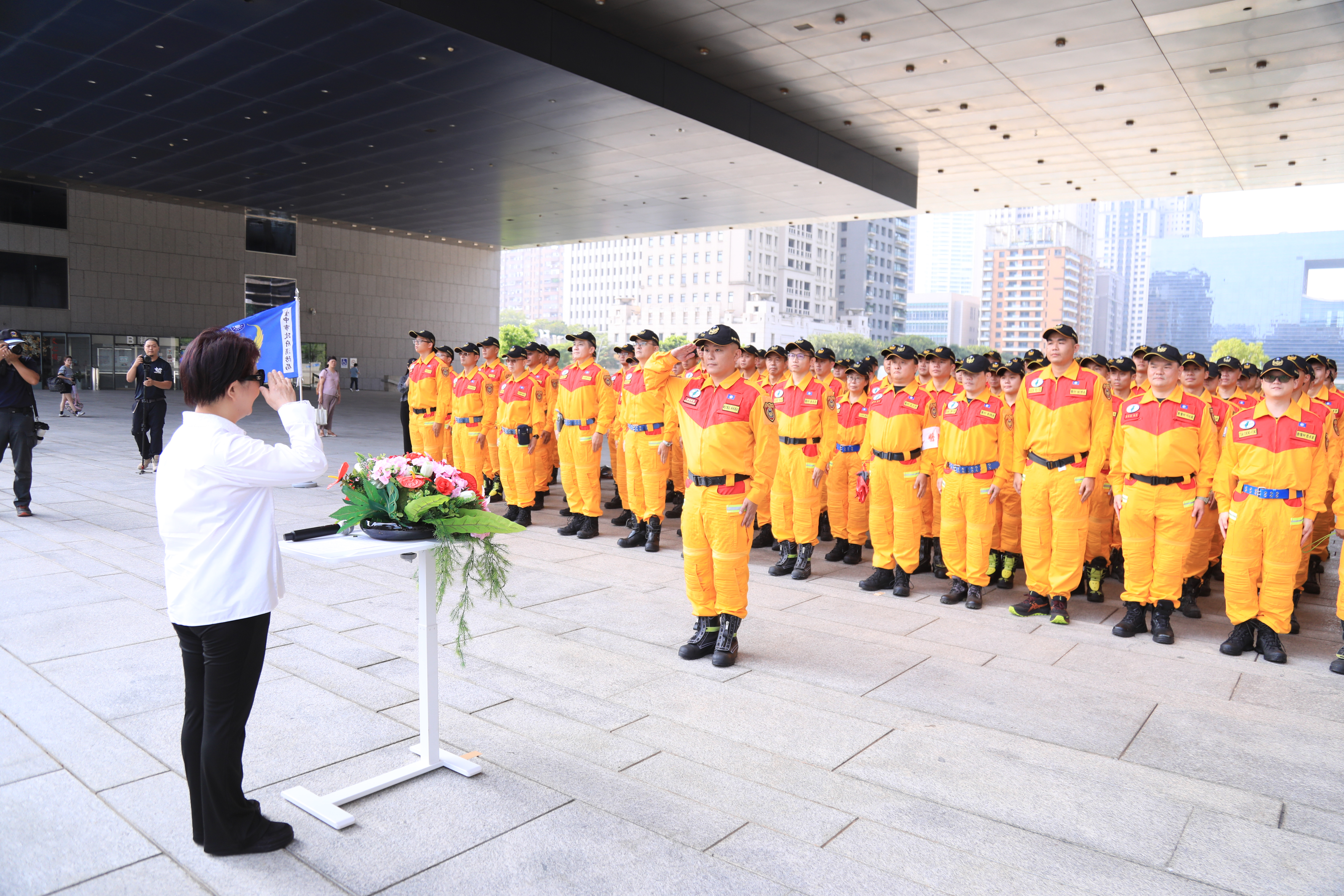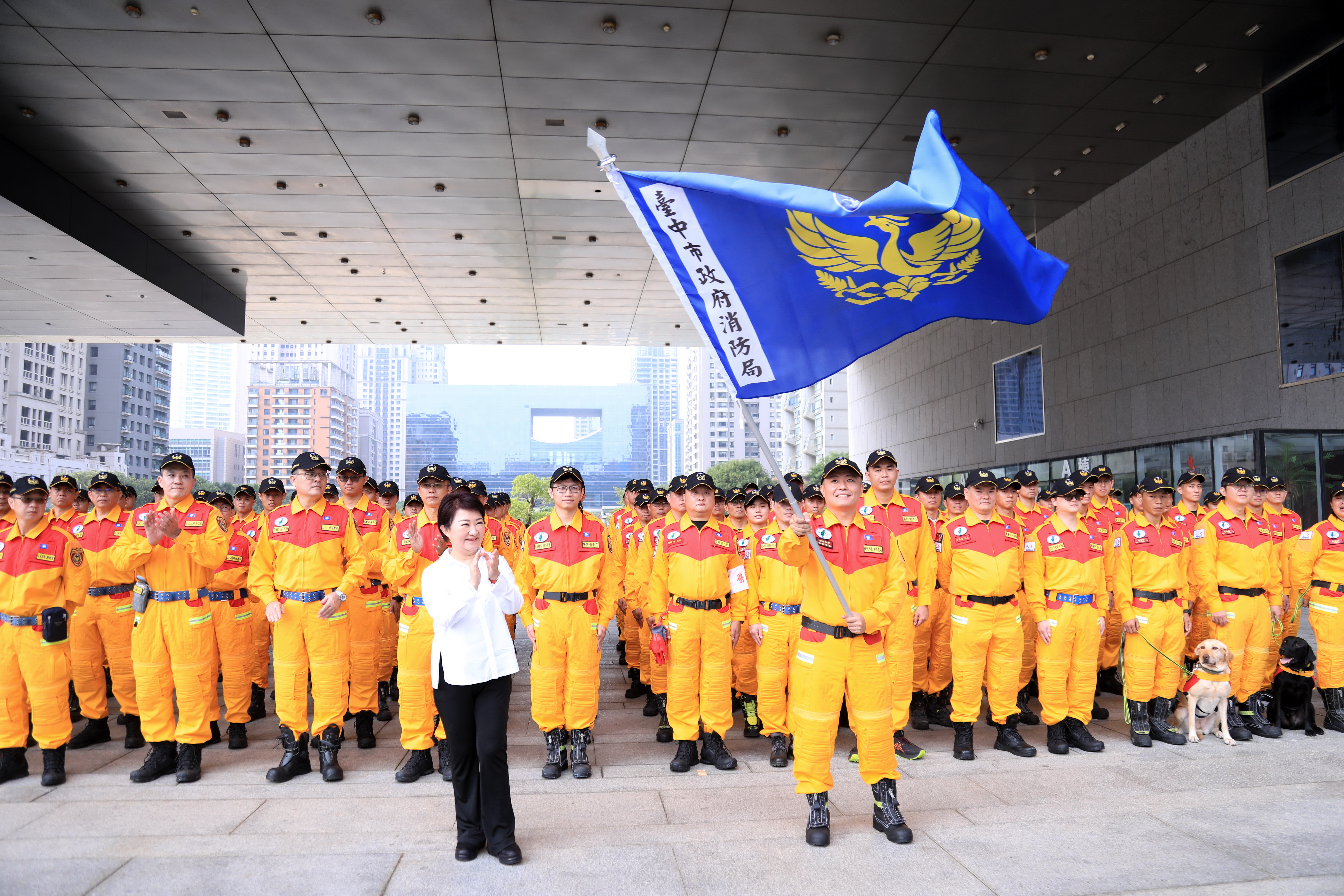 台中市政府今(15)日上午於市政大樓府前廣場舉行「特種搜救隊重型隊伍能力分級檢測授旗儀式」,由市長盧秀燕親自授旗,勉勵全體隊員以最高標準通過重型搜救隊國際評測,展現守護市民安全、馳援國際救援的決心。