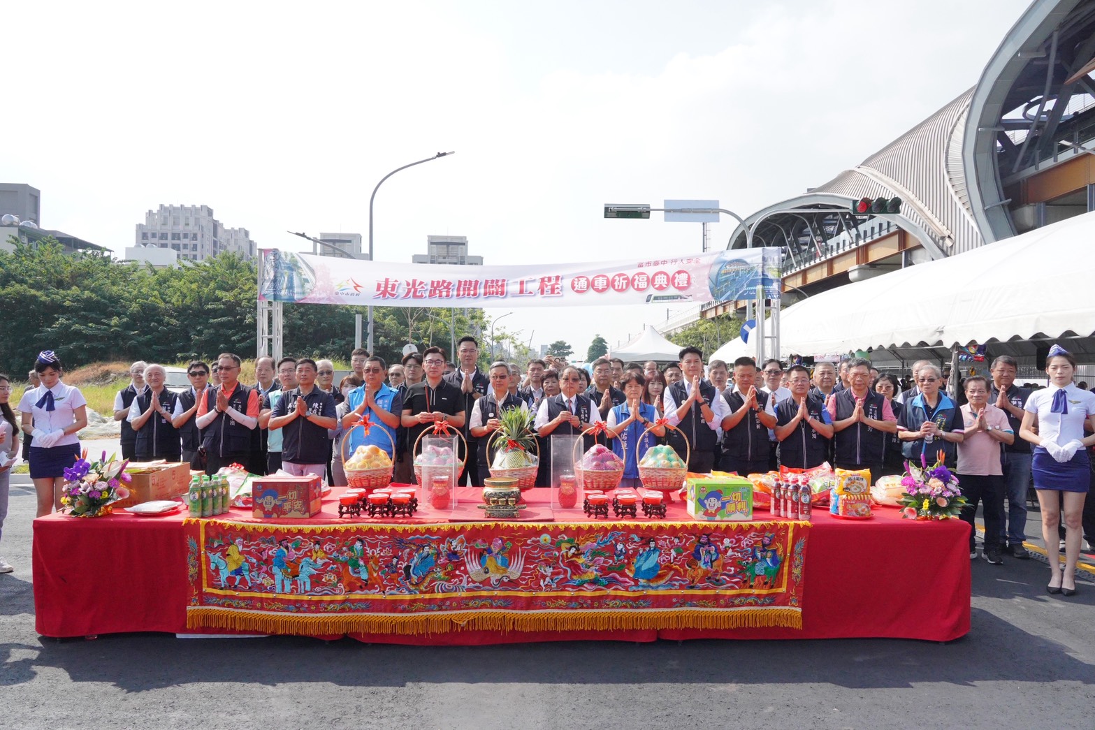 台中北屯區南北向主要幹道「東光路」首階段工程今(16)日正式通車!為紓解松竹路及東山路車流壅塞問題,市長盧秀燕積極推動「東光路計畫道路開闢工程」,在市府建設團隊努力下,首階段「松竹路一段至南興三路」及「東山路一段至東光路892巷」路段順利完工,總經費達新台幣23.1億元。今由建設局長陳大田與民政局長吳世瑋代表盧市長共同主持通車祈福典禮,象徵北屯交通建設再邁新里程,將有效改善松竹路與東山路一帶交通,並強化捷運與台鐵松竹車站聯外功能。