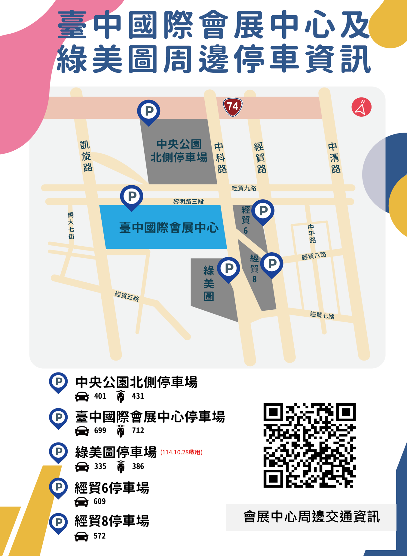 交通局表示,台中國際會展中心試營運,聚焦全球頂級五金工業產品設計與製造中心及供應鏈,更是全台展場的新地標。前往五金工具博覽會的民眾,如果自行開車,除停放黎明路上的台中國際會展中心地下停車場,周邊停車場計有中央公園北側地下停車場、經貿6、經貿8等停車場,台中國際會展中心試營運期間共計有2,300席汽車停車位供民眾使用。