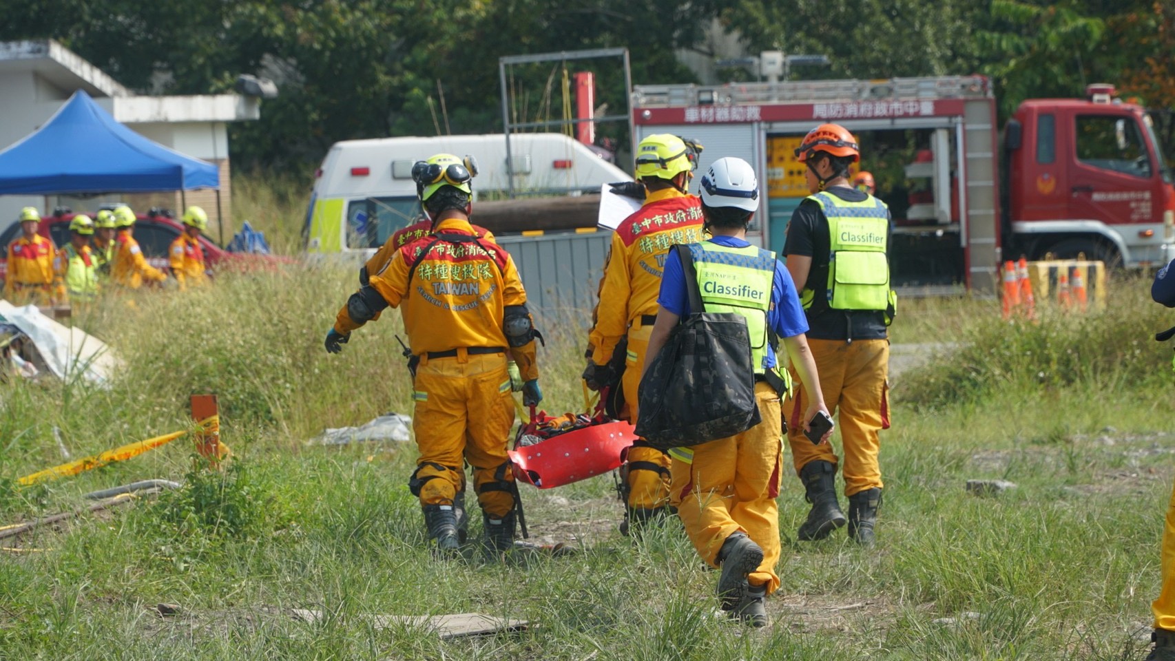 消防局也說,台中市特搜隊自112年取得NAP中型搜救隊認證以來,市府持續挹注資源,全力強化人員與裝備能量。此次評測共動員104名人員,包括土木結構技師、醫師、獸醫師及4隻搜救犬,展現跨領域整合實力。