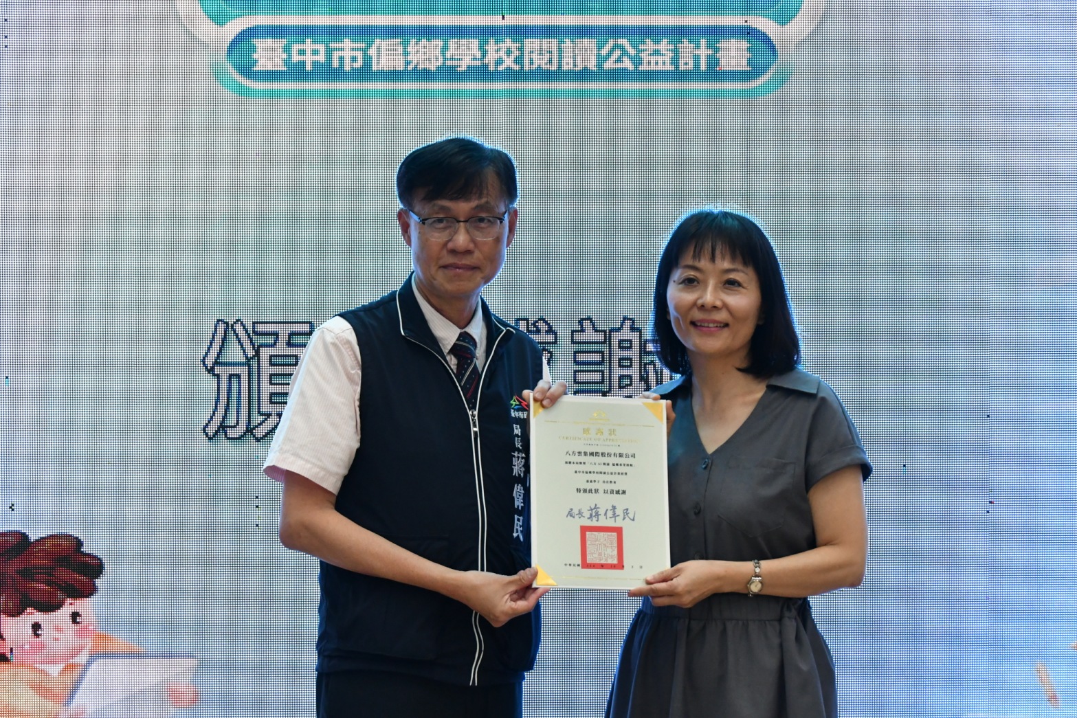 閱讀是孩子看見世界的窗,也是開啟未來無限可能的鑰匙!台中市政府教育局攜手八方雲集公司與富御投資公司,共同推動「八方AI閱讀 偏鄉希望啟航」公益計畫,在台中偏鄉學校圖書館設置「AI智慧閱讀機」,今(17)日於清水區大楊國小舉行啟動記者會,由教育局長蔣偉民親自出席啟動儀式,代表市府表達誠摯感謝,肯定企業以實際行動投入教育公益,照顧偏鄉學童。