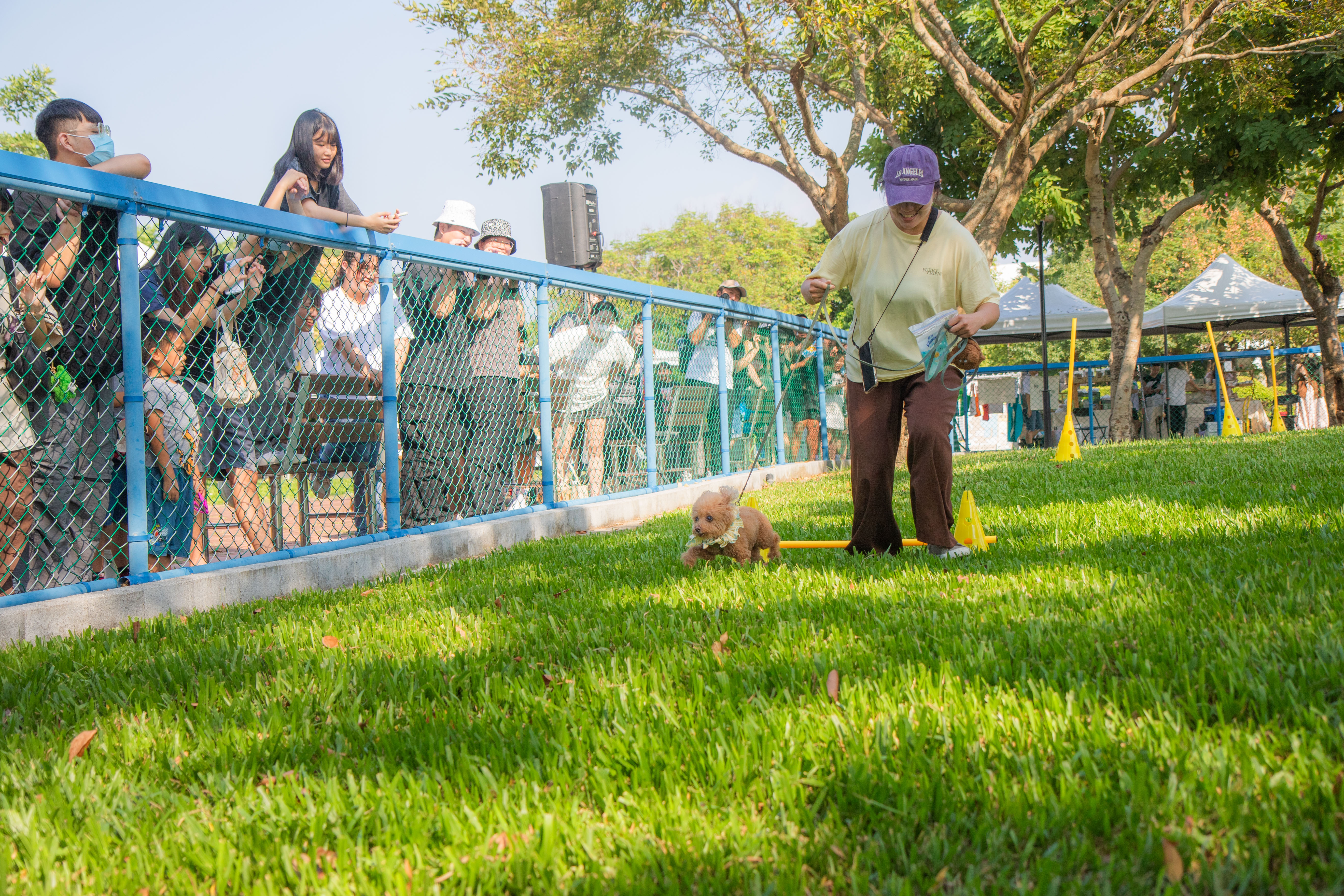 飼主和寵物一起跨越一道道障礙奔向終點