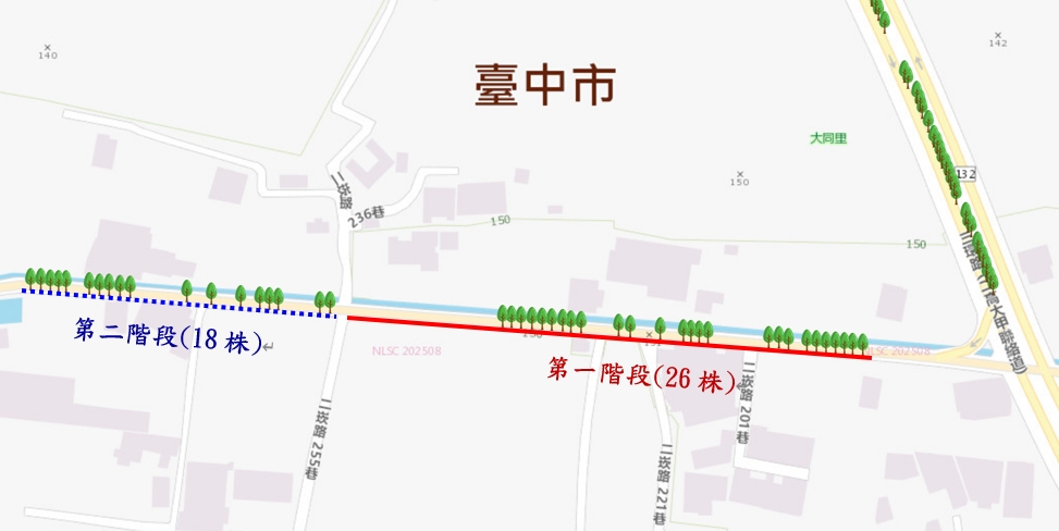 建設局表示,此次黑板樹及路面改善工程採取兩階段辦理,第一階段範圍為二崁路(三環路至二崁路236巷)26株,已於1016日完成移植,並於近期完成路面燙平作業;第二階段18株則預計於明(115)年第一季辦理移植及燙平作業;建設局強調,市府以市民安全為首要原則,施工期間將加強交通引導與維持措施,並同步改善路肩整平,提供人車安全通行環境,兼顧市容景觀與生態綠化,實踐「富市台中 行人安全」願景。(10/21*15)*建設局