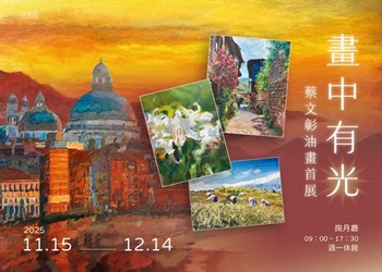 內容 本展是創作者蔡文彰先生的首次個人藝術展,題為「畫中有光」,展現他深厚的藝術熱情與創作心境。創作者在2018年退休後,為了紓解無聊與焦慮心情,開始學習攝影,逐漸發現自己對美的追求與藝術的熱愛。隨著時間推移,投身於繪畫尤其偏好油畫,並以素描作為基礎練習,憑藉敏銳的色彩感受力,展現出豐富的藝術語彙。