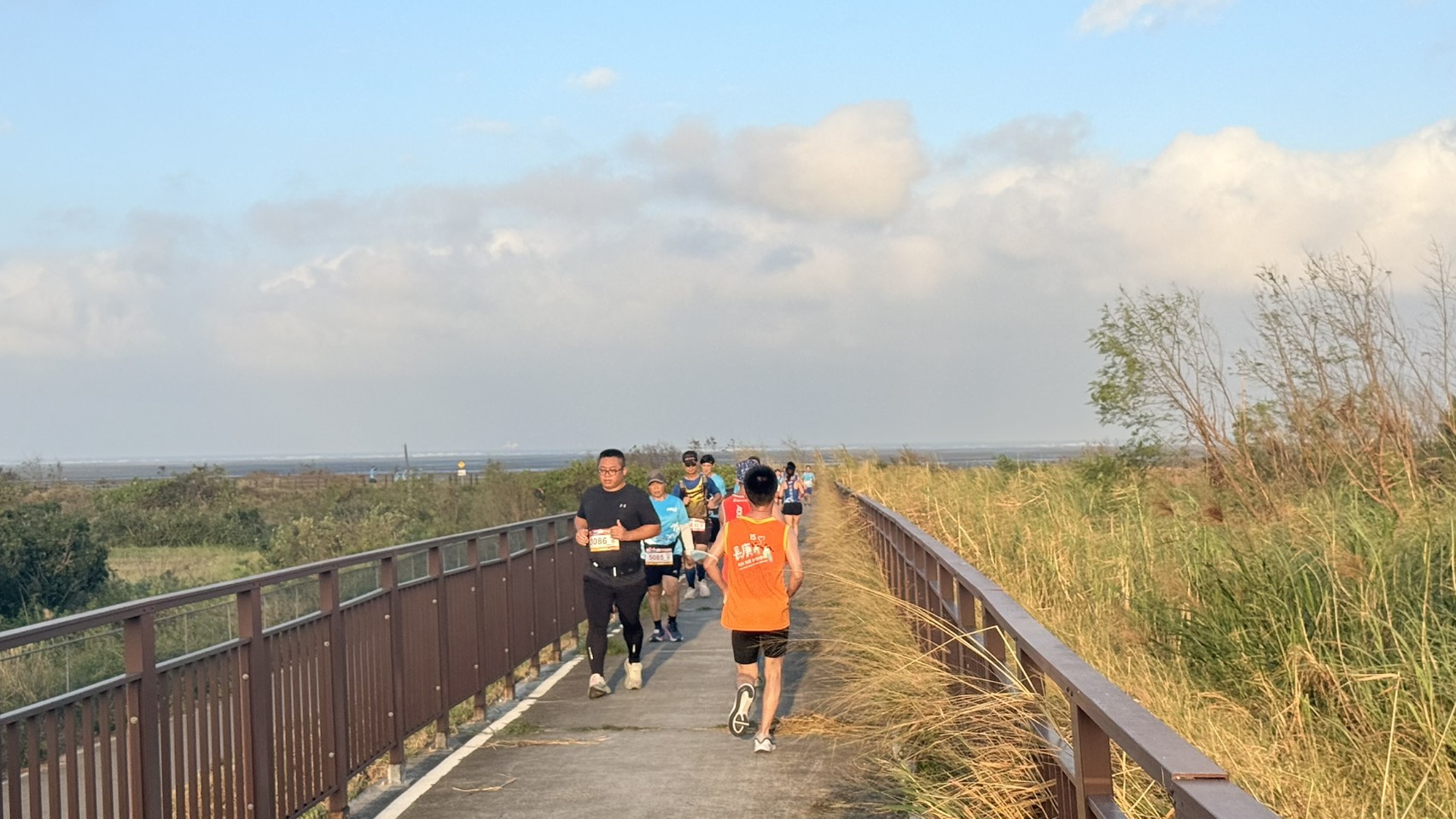 主照-高美濕地海風公益路跑吸引約1,500名跑者迎著晨曦與海風奔馳。