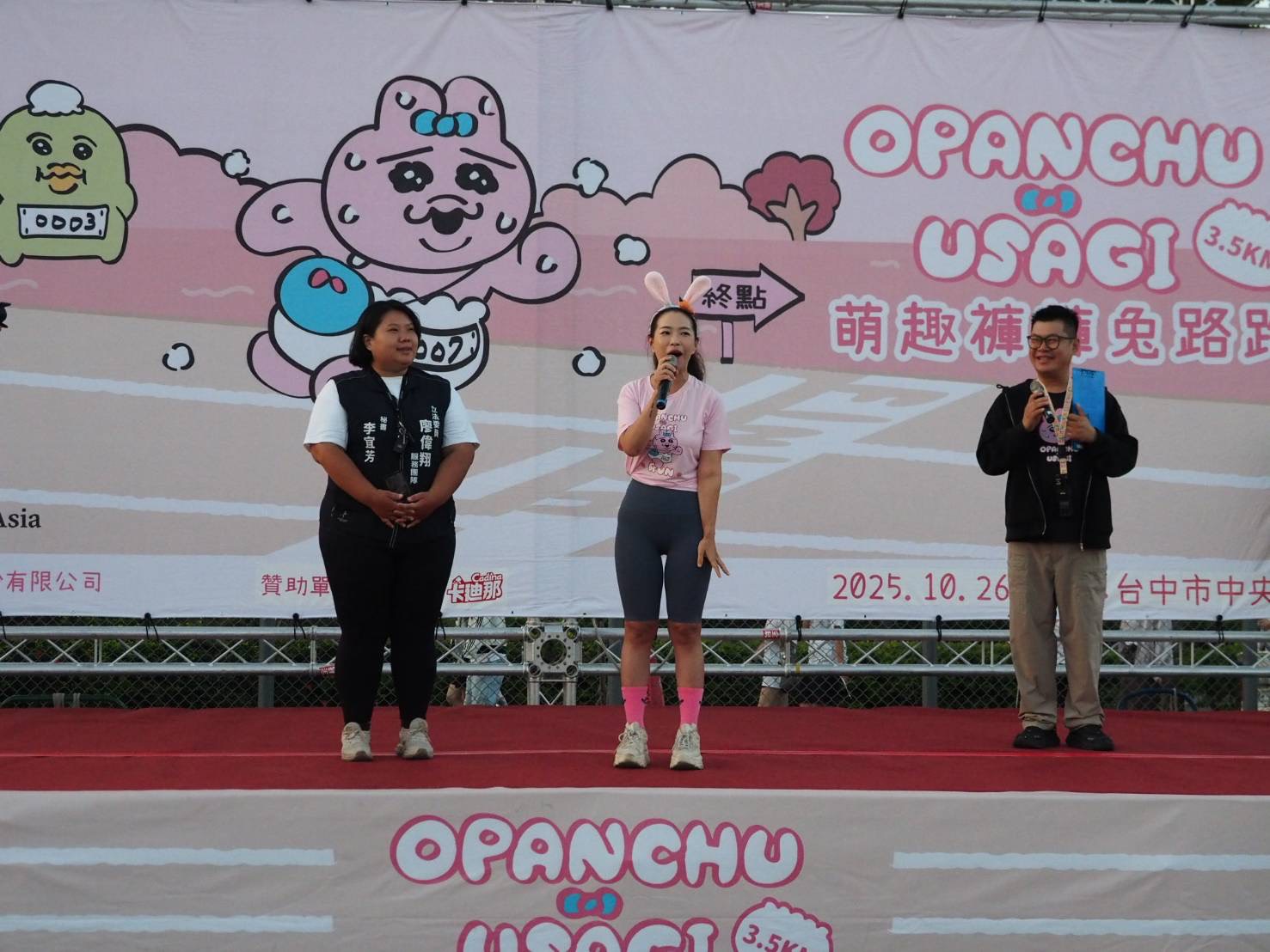 運動局說明,在市區中央球場,褲褲兔以「努力生活、可憐又可愛」的形象療癒登場,即使淚眼汪汪、氣喘吁吁,也要奮力奔跑的模樣引起粉絲共鳴。賽事設有3.5K親子路線與多個拍照打卡點,讓大小朋友盡情合影留念,氣氛熱烈。「萌趣褲褲兔路跑」現場則由運動局專門委員黃欣樺代表出席,特別戴上兔耳造型髮飾與跑者同場起跑,掀起粉絲尖叫聲。
