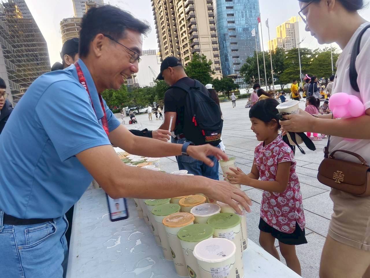 游局長指出,「府前直播應援」系列活動氣氛熱烈,昨(26)日晚間第四戰更結合知名飲品品牌「大茗」,限量贈送100杯飲品與造型磁鐵給球迷,象徵「一鳴驚人、大茗大放」,現場並加碼抽出「加油棒」、「運動水壺」等應援好禮,讓觀賽更添驚喜。他進一步說明,市府前廣場已化身中信兄弟「第二主場」,結合專業音響、現場主持與巨幕轉播,營造最熱血的觀賽氛圍。
