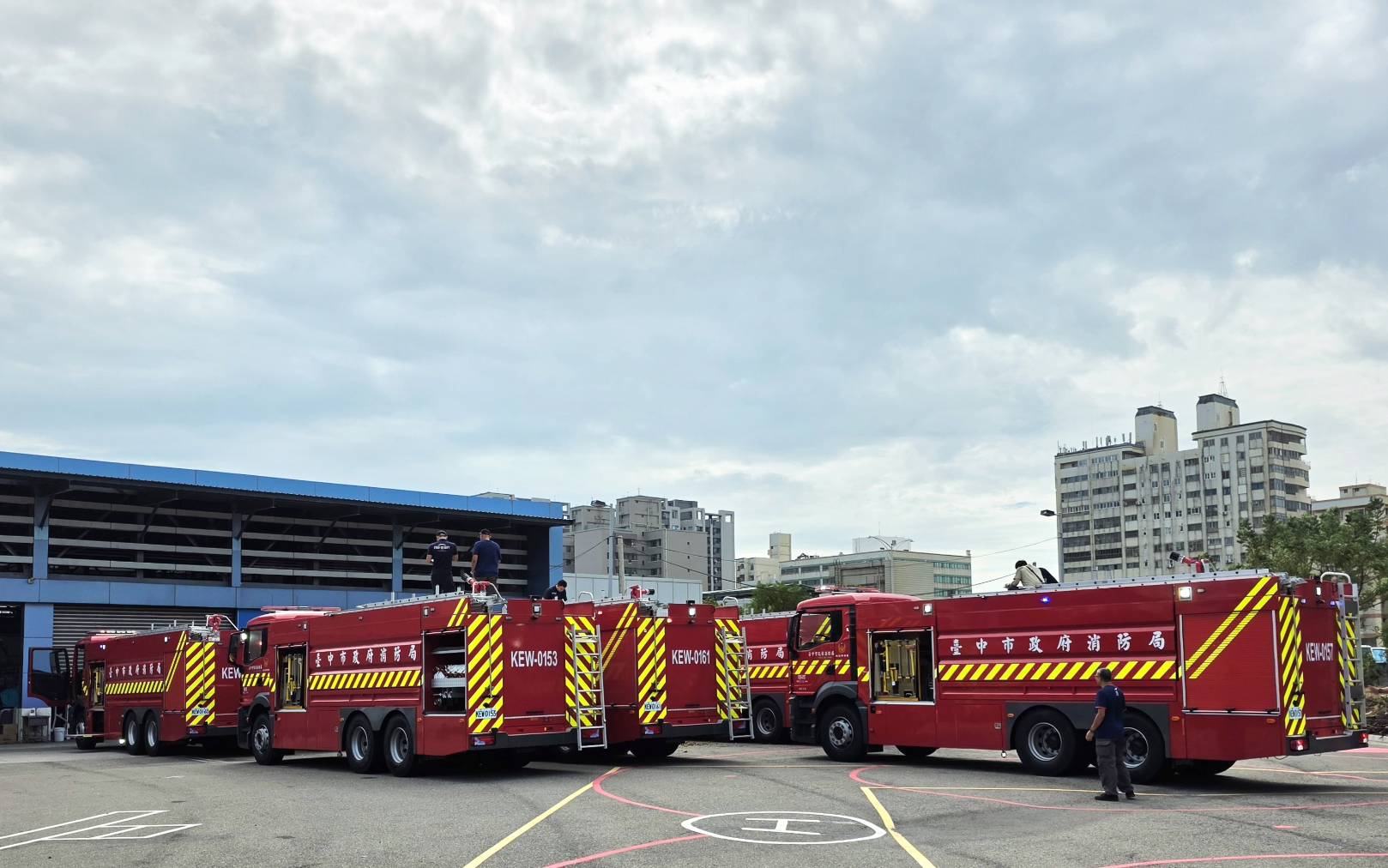 為強化救災效能,台中市政府消防局日前辦理消防車輛採購驗收,共12輛消防新車加入戰力,包括水庫消防車6輛及化學消防車6輛。消防局指出,此次新車全面導入安全與智慧科技,底盤配備防鎖死煞車系統(ABS)、加速防滑控制系統(ASR)、斜坡起步輔助裝置等安全設計,並新增行車視野輔助、盲區偵測警示、車身反光標示與警示燈等裝置,提升行車安全。