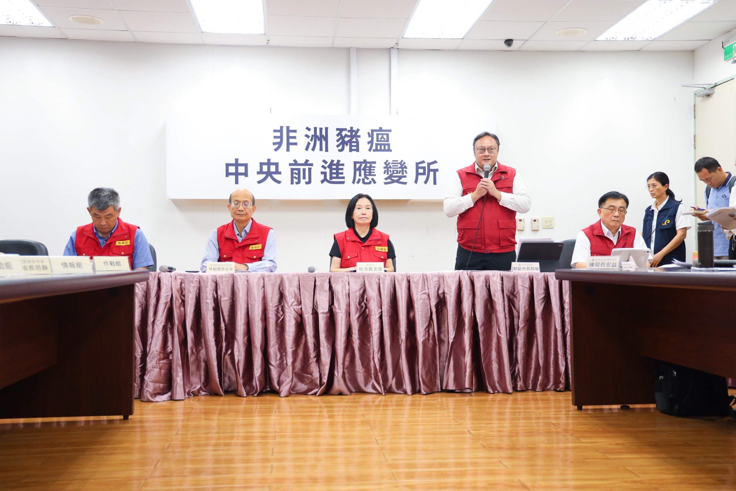 非洲豬瘟中央前進應變所及台中市政府今(28)早召開記者會,說明疫情處理進度與後續應變作為。台中市副市長鄭照新說明,目前非洲豬瘟疫情成功防堵並未擴散,台中市政府會持續攜手中央,在程度上更加深入、範圍上更加擴大,採取交叉比對的方式全力圍堵,希望能將疫情鎖在案場。