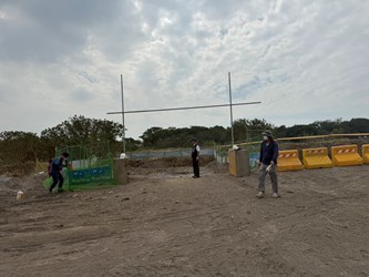 非洲豬瘟疫情進入第二輪防疫階段,台中市政府啟動跨局處防疫應變機制,全力防堵疫情擴散。除台中市政府農業局及台中市政府環保局第一時間投入防疫作業外,各局處亦積極支援、共同強化防疫體系。台中市政府建設局昨(30)日配合防疫需求,動員人力與機具,於疫區增設防塵網,並在文山掩埋場設置乙種圍籬,採鋼筋打入支撐以提升穩固性;今(31)日將再支援吊車作業,協助完成上部圍設,有效阻隔鳥類等動物進入疫區,進一步切斷可能的傳播途徑。此舉展現市府團隊通力合作、嚴密防堵疫情擴散的決心,守護畜牧產業與市民健康。