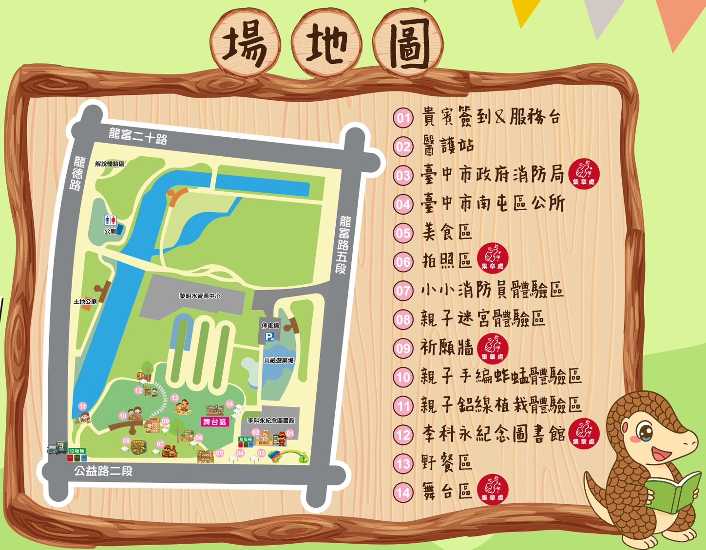 另現場設有「祈願牆打卡區」,完成拍照打卡即可兌換由財團法人台中市文昌公廟贈送的文昌筆鑰匙圈,象徵智慧與祝福。消防局帳篷也提供限量著色筆組與著色圖,鼓勵親子共同創作,完成作品即可兌換小禮品;活動最後還有壓軸摸彩,大小獎項共40個,驚喜不斷。