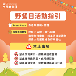此外,為營造一致的活動氛圍,今年特別邀請民眾穿著白色上衣與牛仔褲,帶上最愛的書與墨鏡,打造屬於台中的「草地閱讀日」。同時提醒,活動現場禁止烹煮、烤肉、政治宣傳、宗教募款及搭設帳篷等行為,呼籲大家一同維護整潔、安全的活動環境。