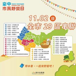 建設局長陳大田表示,深受民眾喜愛的「台中市民野餐日」活動邁入第四屆,今年以「草地閱讀」為主題,於全市29個行政區同步展開,此次中央公園主場區由建設局與西屯區公所共同策劃,規劃三大主題區並首度引入市集活動,讓野餐日更添趣味,邀請市民朋友到訪享受輕鬆愉快的野餐時光。