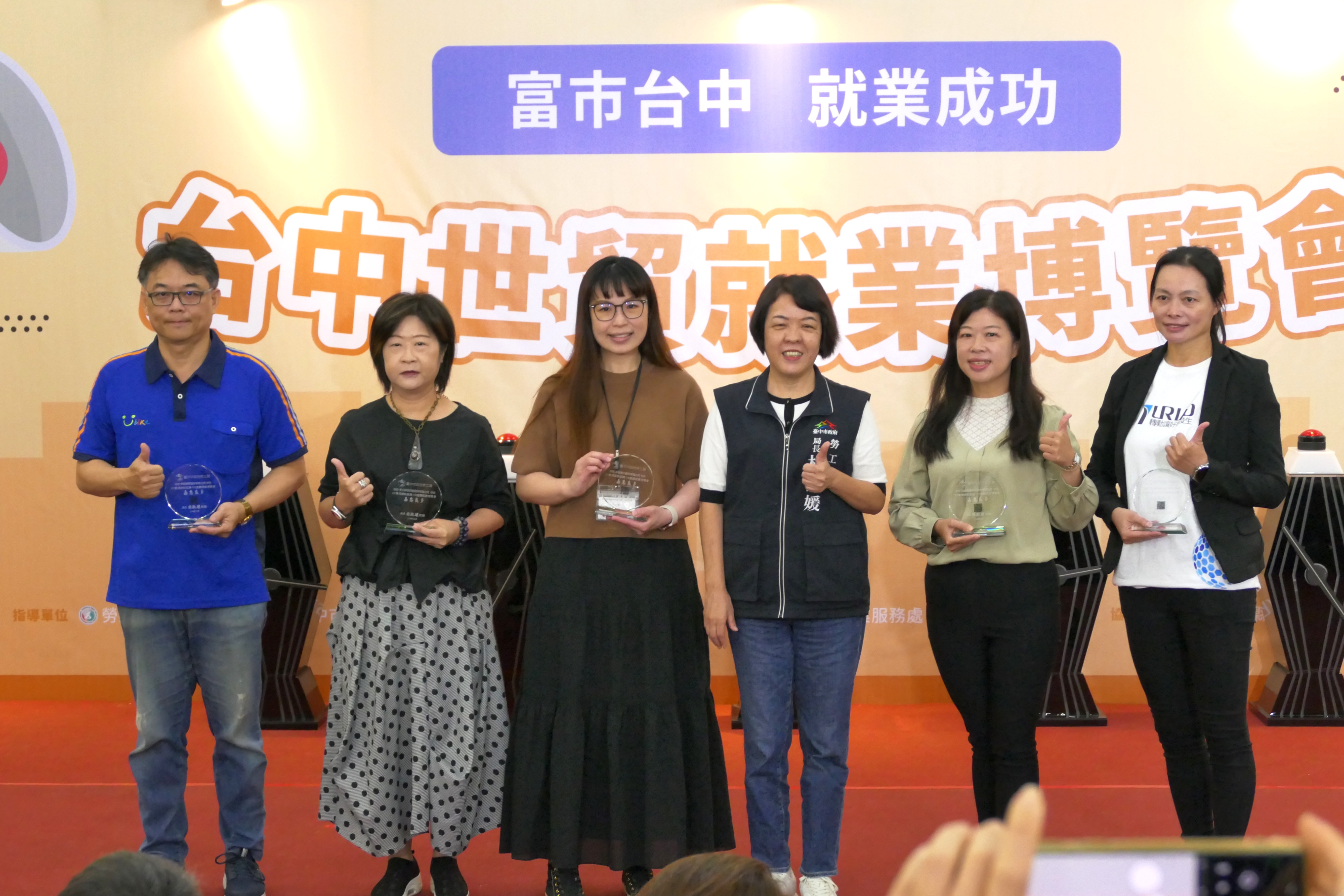 台中市政府今年最大場「富市台中 就業成功」台中世貿就業博覽會,今(1)日在台中世貿二館熱鬧登場!現場設置科技領航專區、智能製造專區、職場友善專區、服務先鋒專區及新創能量專區等5大徵才專區,邀集96家廠商,提供超過5,200個職缺,吸引上千名求職者熱情參與,初步媒合率達6成,其中大立光、台灣美光、矽品精密等知名企業面試攤位大排長龍,吸引許多求職者慕名而來,也讓求才企業找到優質人才。