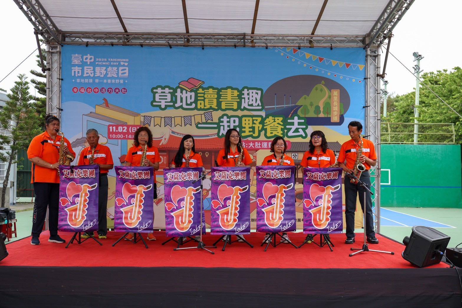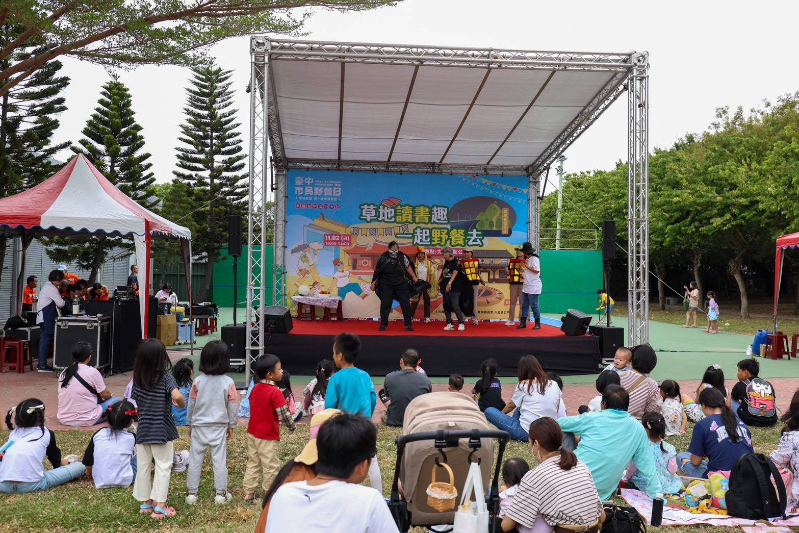 今年活動以「草地閱讀」為主題,鼓勵民眾攜帶書本、雜誌來野餐,現場也精心安排草地閱讀專區扭蛋及拼圖互動、閱讀小兔DIY手作闖關、AI繪本閱讀以及貓頭鷹故事屋劇團有趣的演出,攤位區還有九宮格投沙包遊戲吸引民眾大排長龍,在艾薩克樂團薩克斯風的輕鬆音樂陪伴下,孩子們聽故事、翻繪本、玩遊戲,體驗創意手作與科技閱讀的雙重樂趣。活動不僅鼓勵市民親近自然、享受戶外活動,更讓家長與孩子在故事與遊戲中加深親子情感,營造幸福與感動。