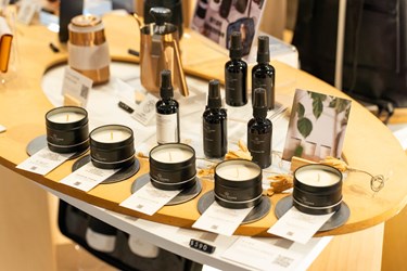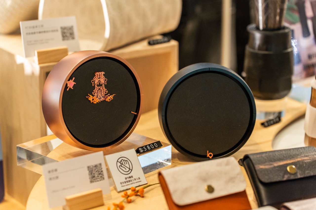 在文化轉譯的創意表現上,「C&S design」以懷舊糕點為靈感,推出《龜龜米果杯墊》與《魚魚香石》,將永續材質與在地記憶融入日常器物。「TINGS AROMA亭氏香氛」則以旅行為靈感,設計方便攜帶的大豆蠟香氛,讓外出旅遊的當下也能隨時以喜愛的氣味放鬆心情。「森下樹」結合台灣山林大理石與皮革,創造兼具質感與實用的新型生活工藝品,展現對材質的深層理解與創新精神,快閃展售會商品豐富多樣,歡迎到台中國家歌劇院參觀選購。