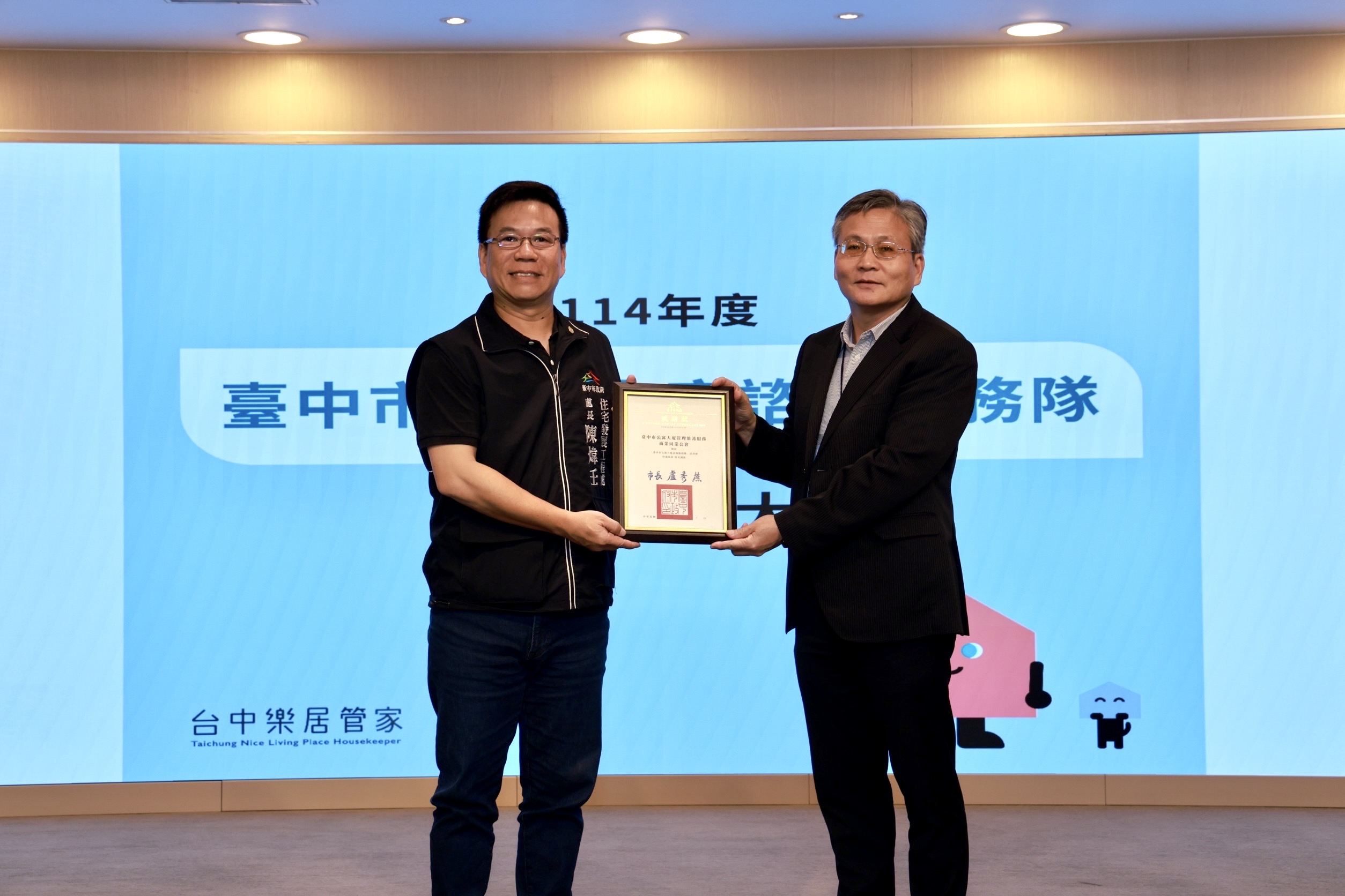 台中市政府都市發展局今(7)日舉辦「公寓大廈諮詢服務隊」表揚典禮,由住宅發展工程處長陳煒壬頒發感謝狀,給熱心服務市民的諮詢師及四大公寓大廈從業團體,感謝公私齊心協力、提升市民公寓大廈生活知能;現場併同辦理志工教育訓練,邀請專家分享公寓大廈法令與實務執行,充滿服務熱忱的諮詢師們從各方齊聚,現場氣氛熱絡。