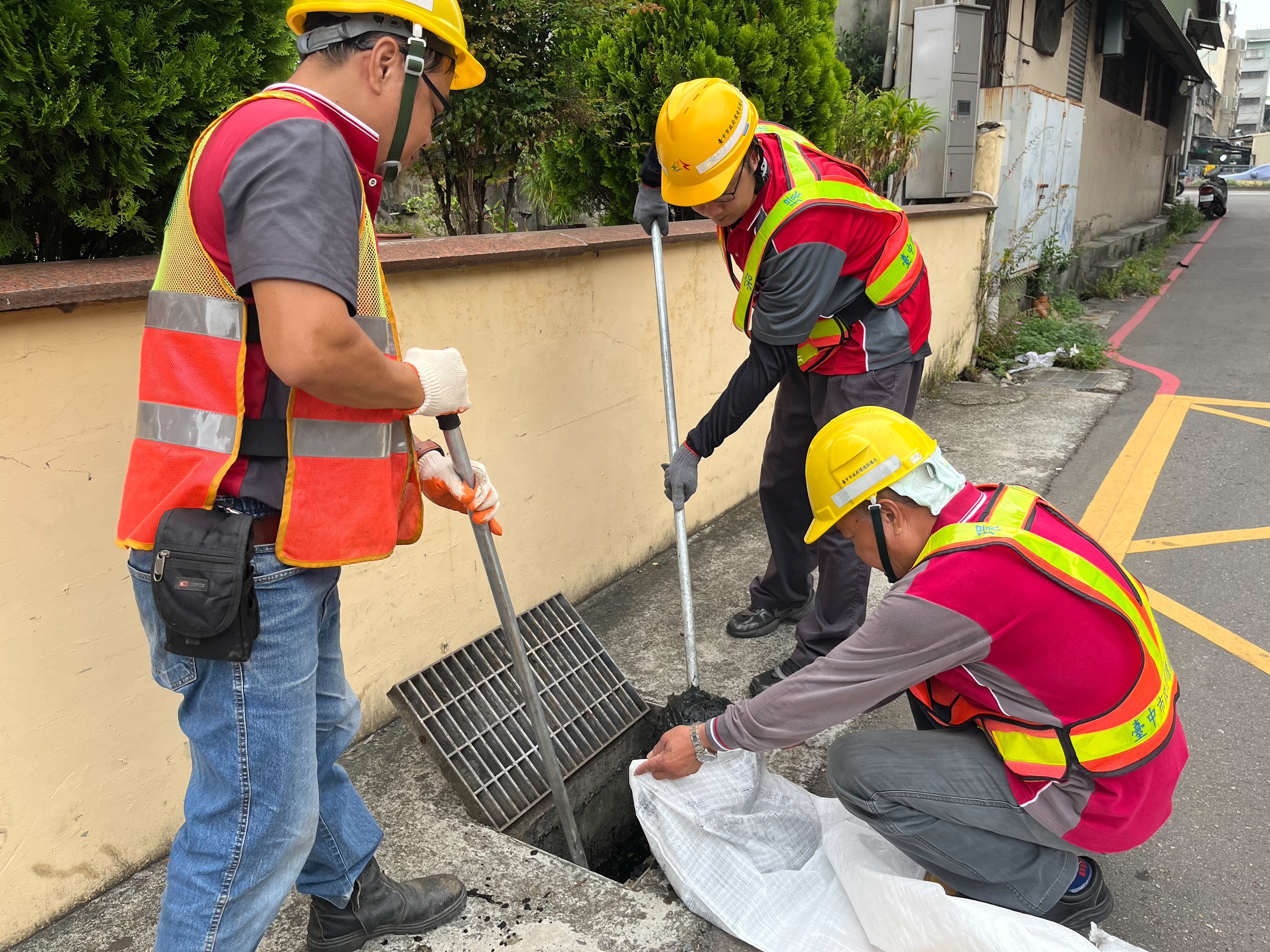 環保局表示,已加強清除排水孔蓋上方樹葉等雜物,避免影響排水功能;針對台中市列管468處易堵塞積水路段側溝,汛期前已全面完成清淤作業。自11月7日至9日9時止,共動員951人次,巡檢長度達2,689公里,清掃阻塞水溝蓋1,451處,清溝長度約23.8公里。同時完成164輛清理應變車輛(含抓斗車、清溝車、掃街車、洗街車)及95台重型機具(鏟裝機、挖土機、推土機、堆高機)及鏈鋸等手工具之整備檢查,聯繫災害應變開口契約廠商同步整備人員與機具,強化風災應變效能。